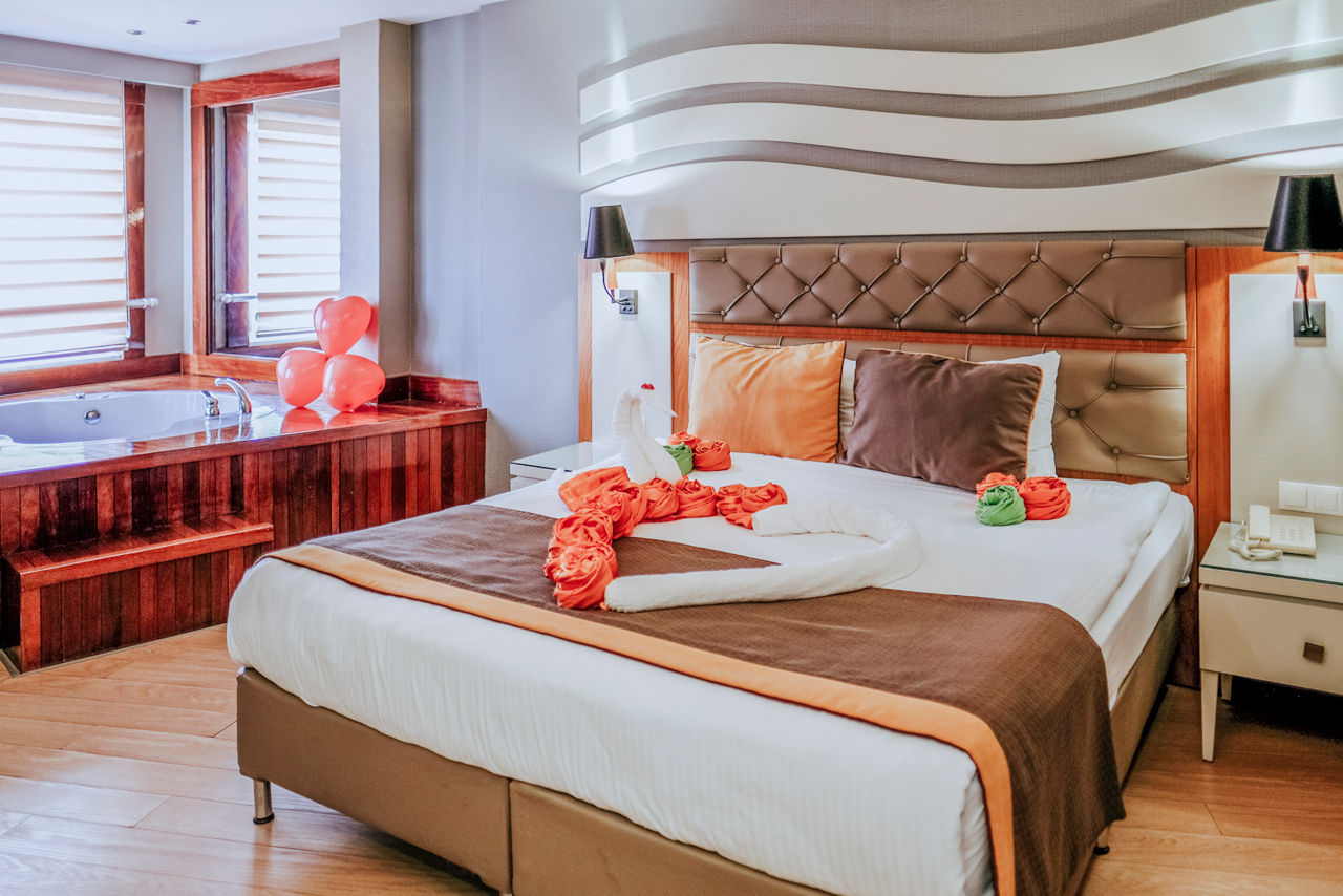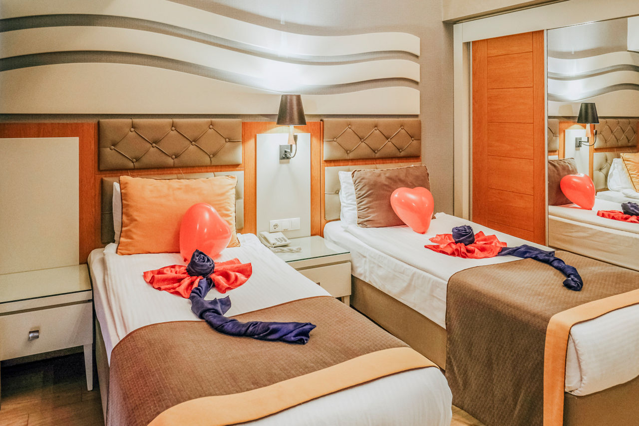 Economy Standard Double and Twin room sleep up to 2 adults and have a bathroom with shower only, hairdryer, air conditioning, flat screen satellite TV and balcony or terrace. Standard Double and Twin rooms with Land View, Standard Double and Twin rooms swith Sea View, Family Duplex room, Family Connection rooms, VIP Jacuzzi rooms and rooms for sole use are also available.