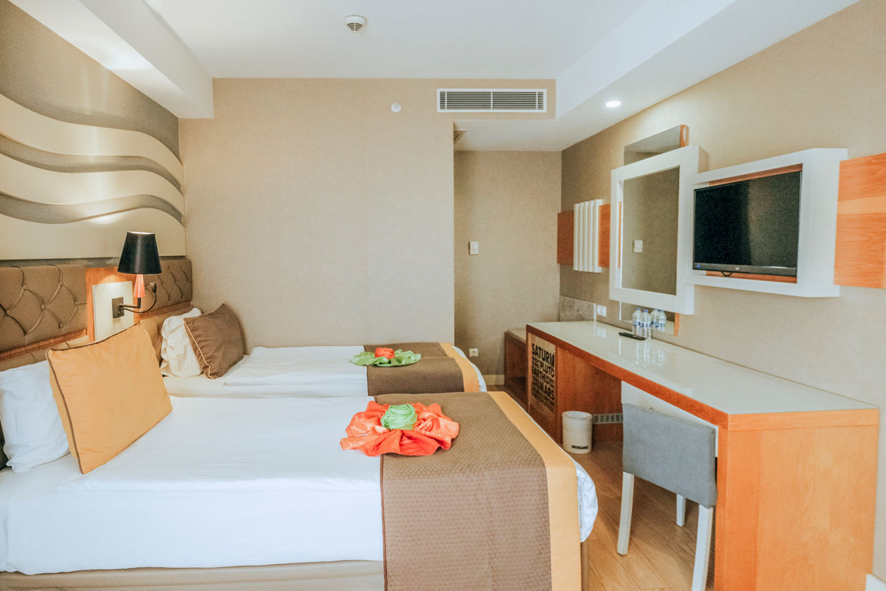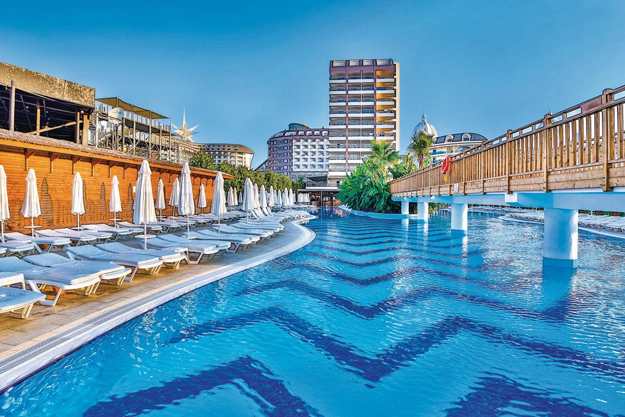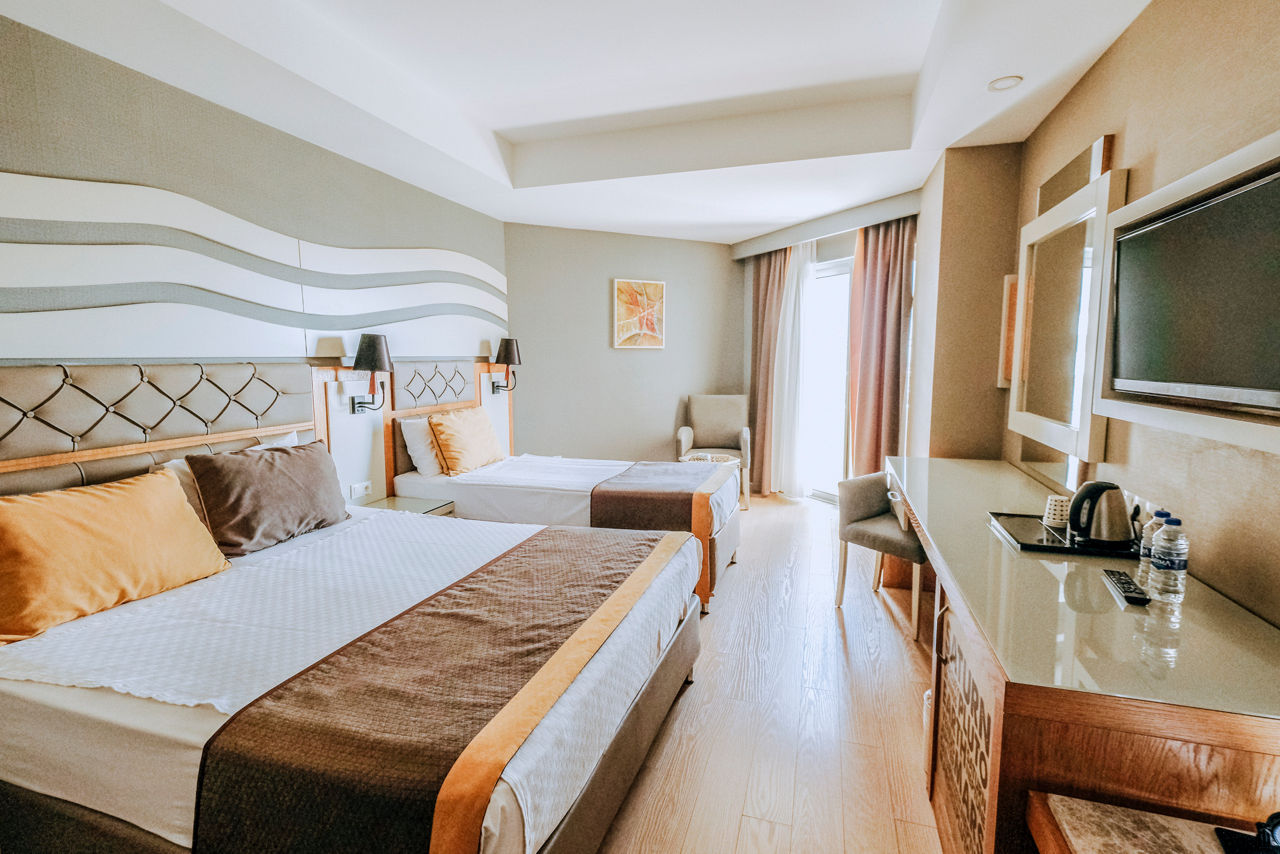 Private beach area, on-site waterpark and splash park, a top tier All Inclusive package ? yep, it?s clear to see why Saturn Palace Resort is one of our Family Favourites! But the highlights don?t stop there ? a lovely outdoor pool with plenty of loungers, chic rooms and a children?s club will be at your fingertips too. In need of pampering? Grown-ups can head to the spa for massages and the Turkish bath. Bliss. Four restaurants, seven bars, daily entertainment, a full gym? The list really does go on. It?s a winner, what more can we say?