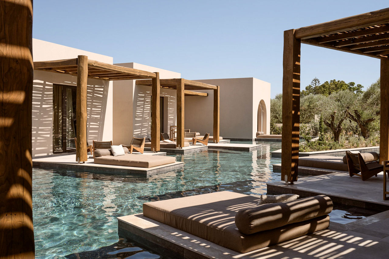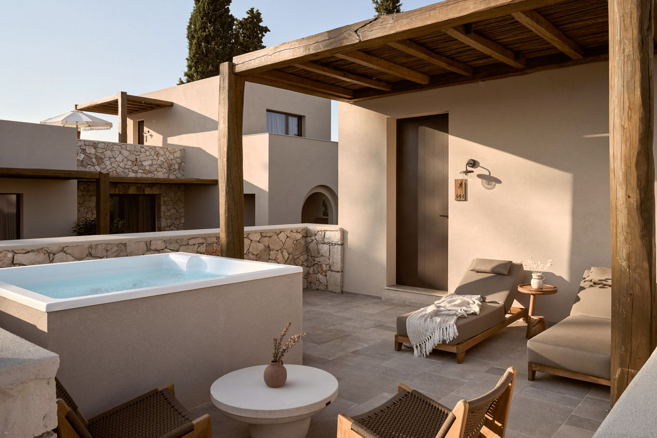 Nestled on a pine tree hill overlooking Laganas Bay, Pierros Verde provides the perfect setting for a relaxing retreat. Spend your days lounging around the stylish pool area or head to one of the nearby beaches. Suites are modern and minimalist, plus they all come with either a share swim-up pool or whirlpool for ultimate relaxation.
