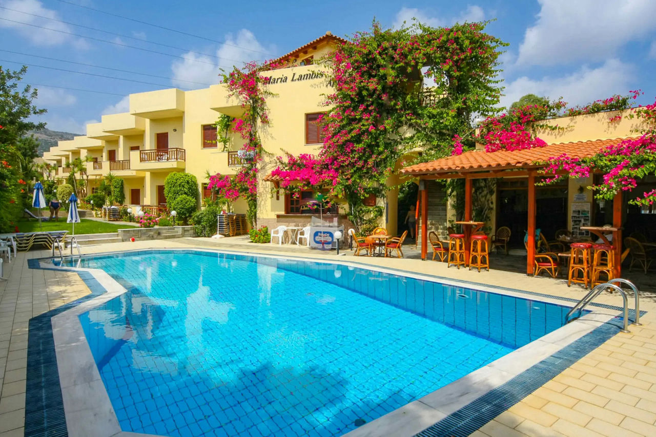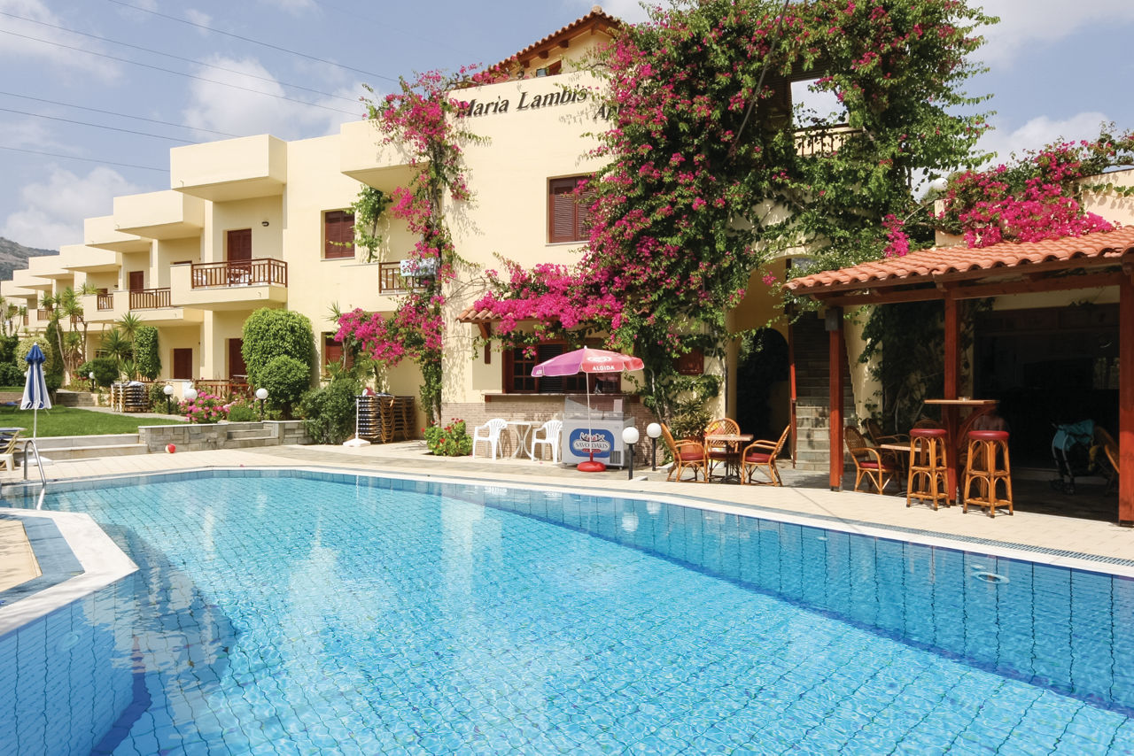 The Maria Lambis Apartments are a hidden gem on the outskirts of the popular resort of Stalis. The traditional theme is apparent here, with authentic Cretan hospitality and occasional Cretan evenings with homemade Greek cuisine and local wine to set the scene. Meanwhile, the attractive pool area set within stunning gardens of flowering bougainvillea provides a relaxing escape away from the hustle and bustle.
