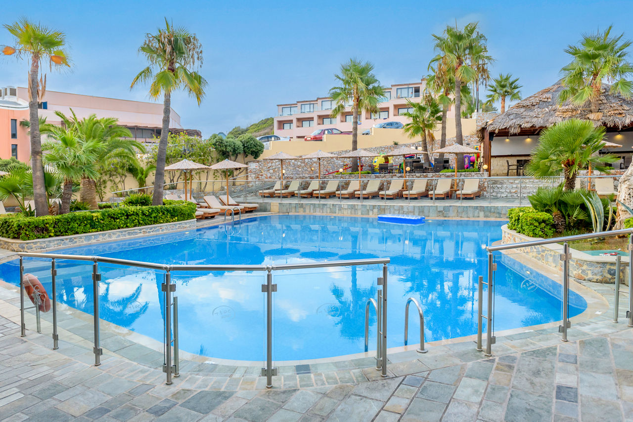 Boasting stunning hilltop views of the Cretan sea, friendly staff are ready to give you a warm welcome to Theo Hotel. Classic Greek hospitality awaits while you enjoy any of the three pools. Take a short walk down to the beach or if you?re after some peace and quiet, relax on your private balcony! There?s plenty to please the kids too, with a playground and arcade games for them to enjoy. This property is the perfect place to have a comfortable and quiet break away in Greece.
