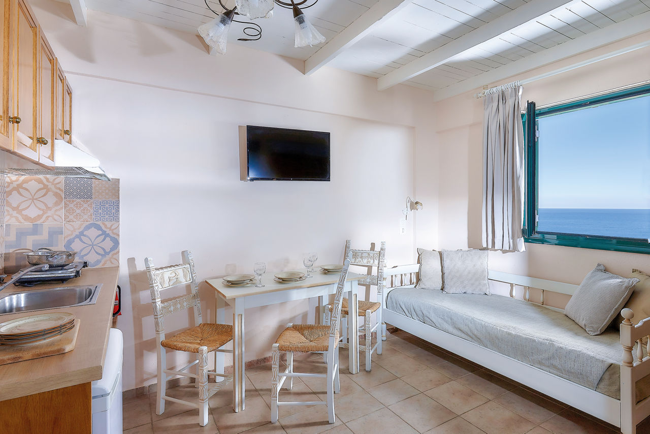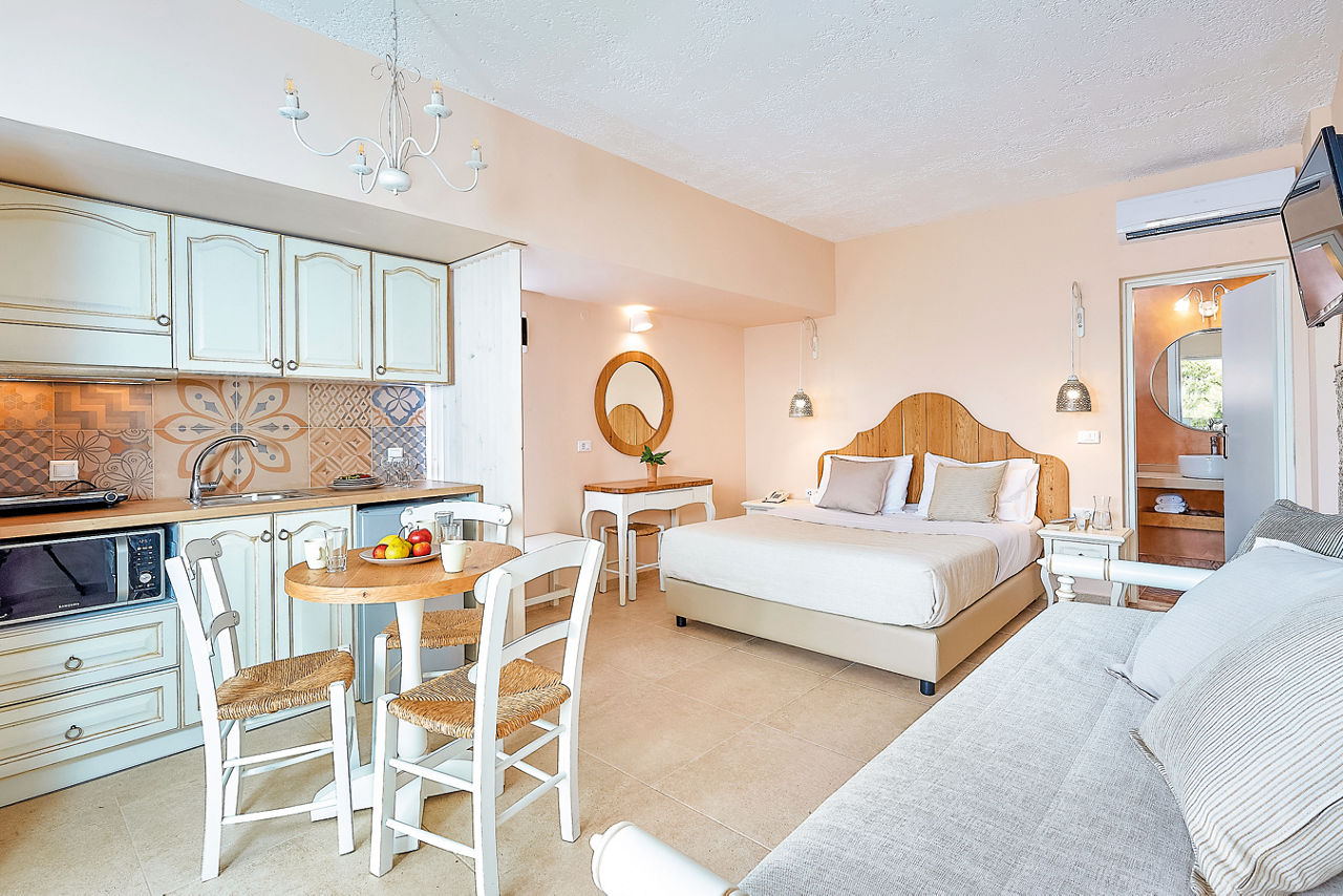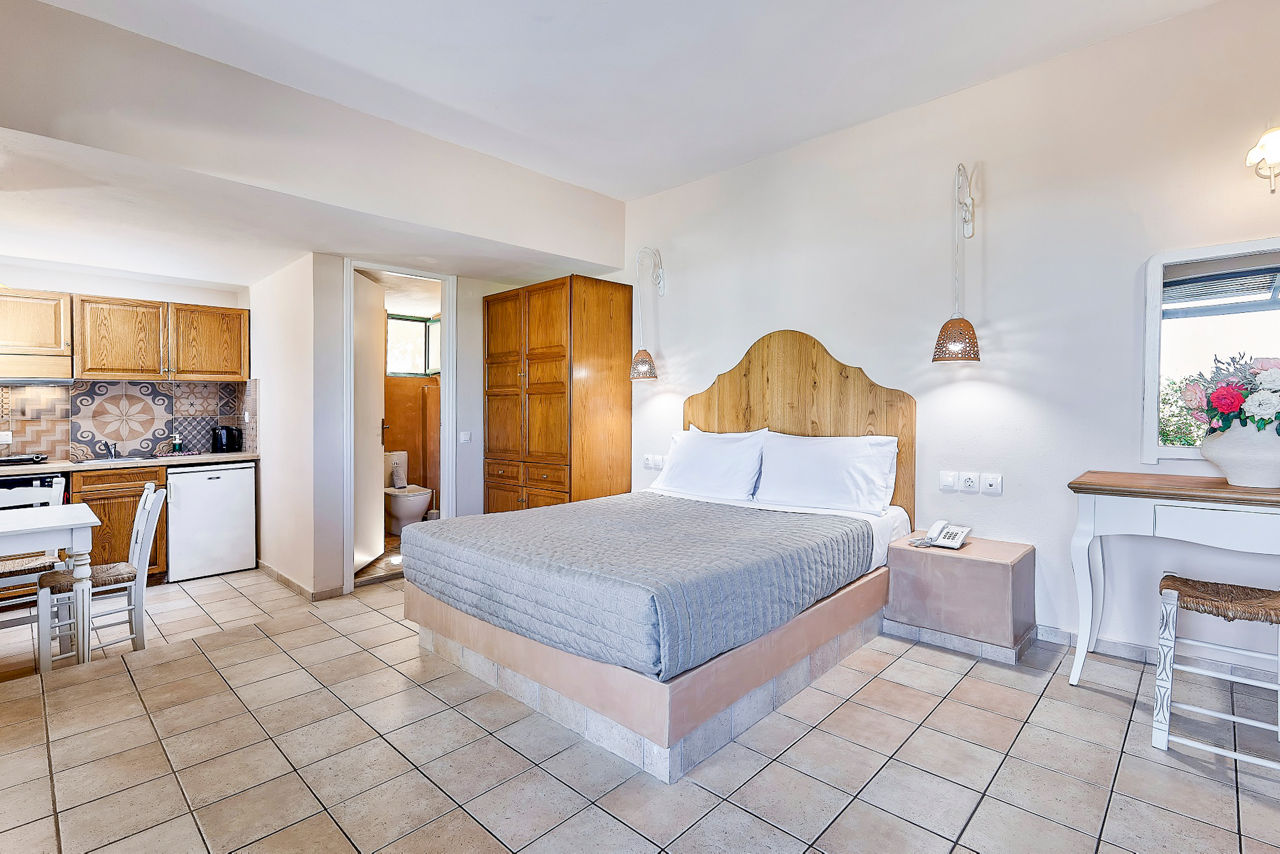 Studios sleep up to 3 adults and have bathroom containing a shower, air conditioning*, hairdryer, television, tea and coffee making facilities, double cooking rings, oven, fridge-freezer and balcony or terrace. Room upgrade options are also available.