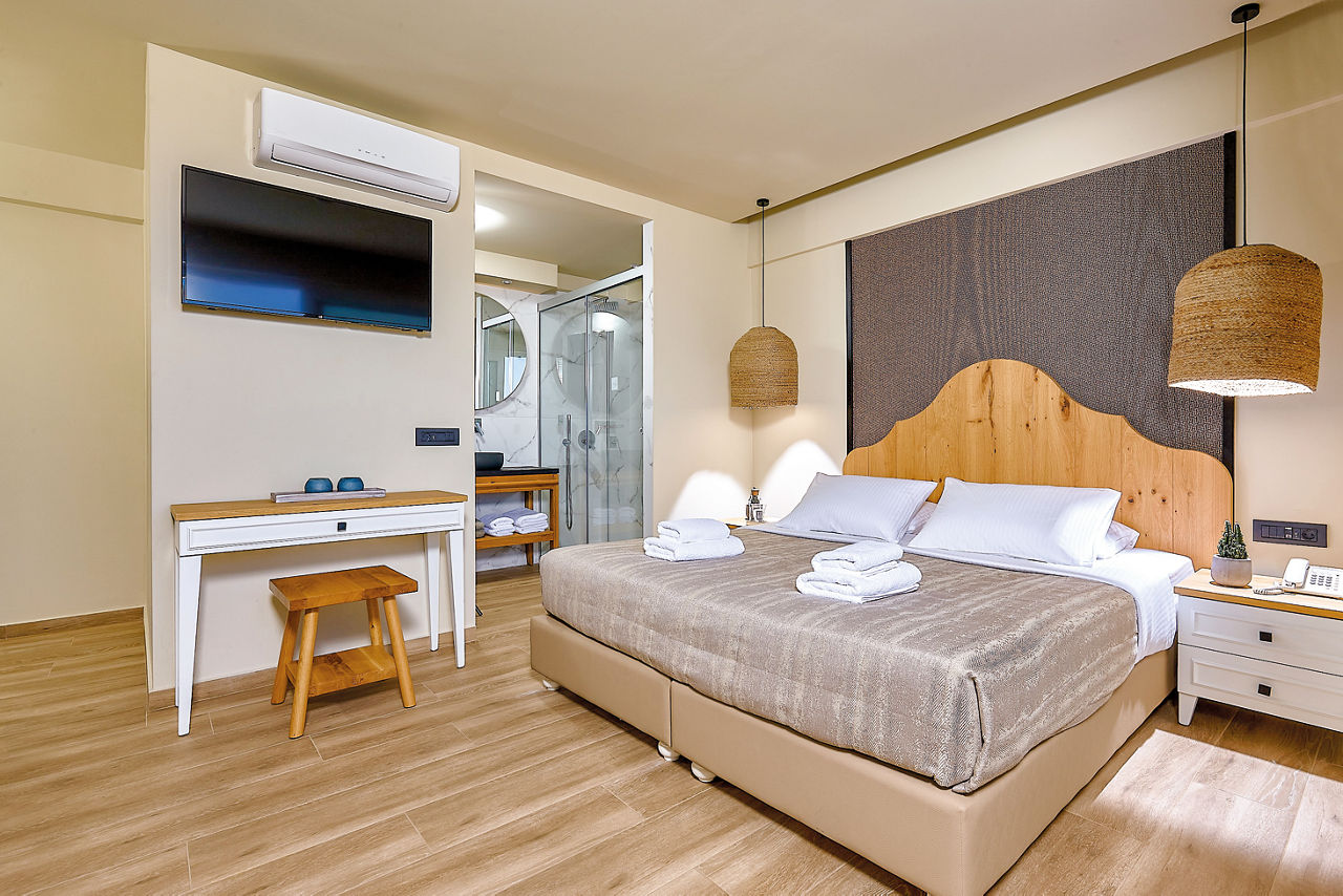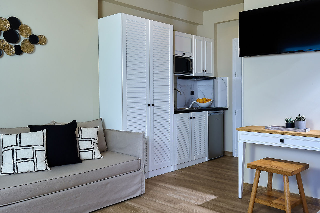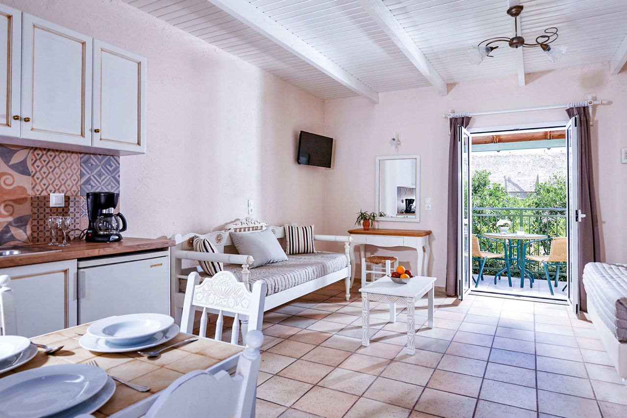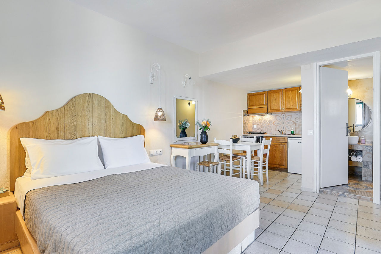 Studios sleep up to 3 adults and have bathroom containing a shower, air conditioning*, hairdryer, television, tea and coffee making facilities, double cooking rings, oven, fridge-freezer and balcony or terrace. Room upgrade options are also available.