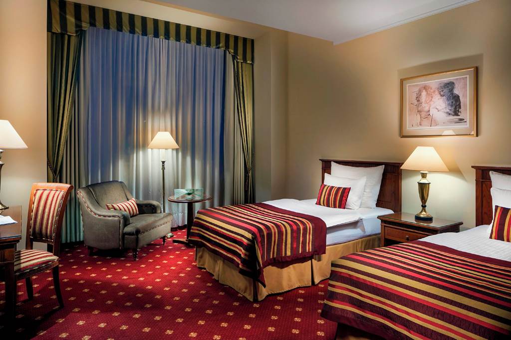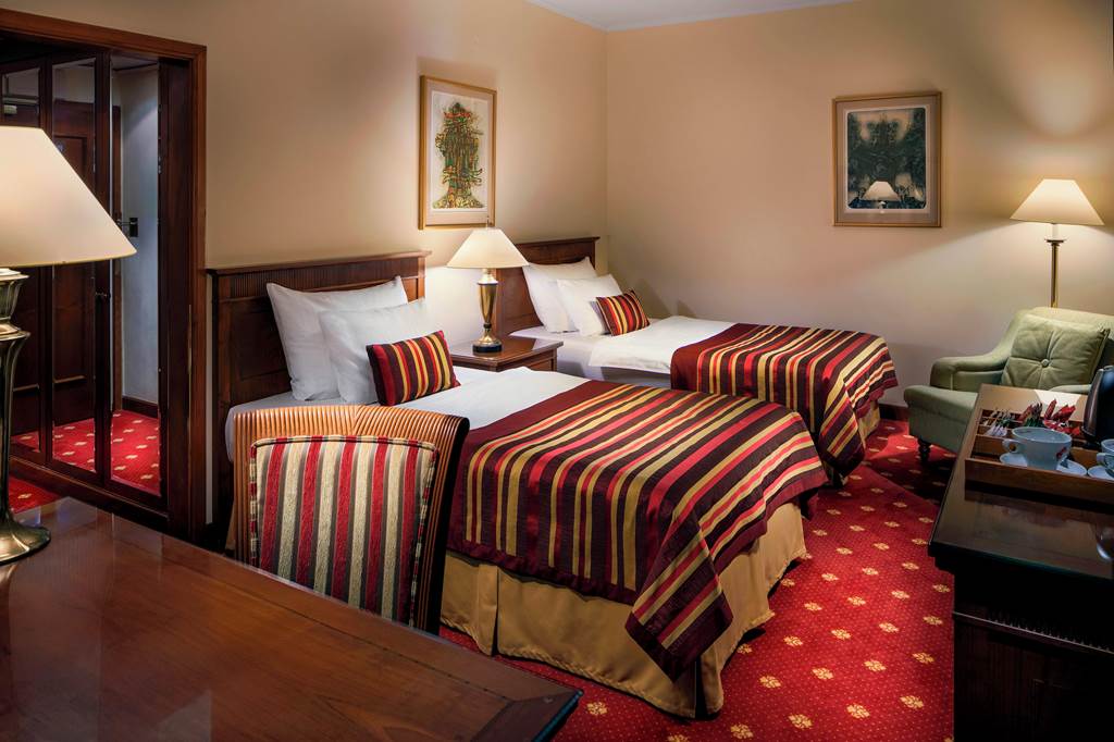 Deluxe Double or Twin rooms sleep up to 3 adults and have bathroom containing a bath or shower, air conditioning (Apr-Oct), hairdryer, television, kettle, mini-bar and safety deposit box. Executive Double or Twin rooms are also available.