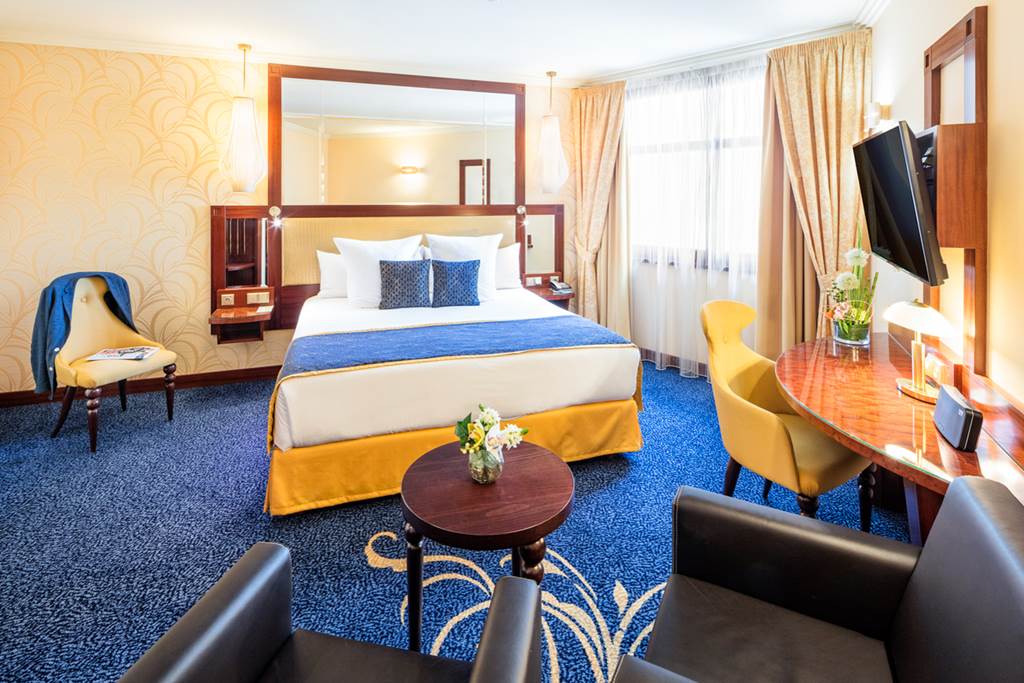 Superior Double and Twin rooms sleep up to 2 adults and have bathroom containing a bath or shower, air conditioning, hairdryer, television, tea and coffee making facilities, mini-bar and safety deposit box. Room upgrade options and Sole Use rooms are also available.