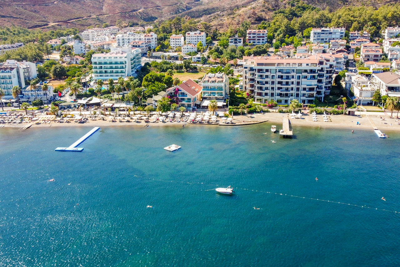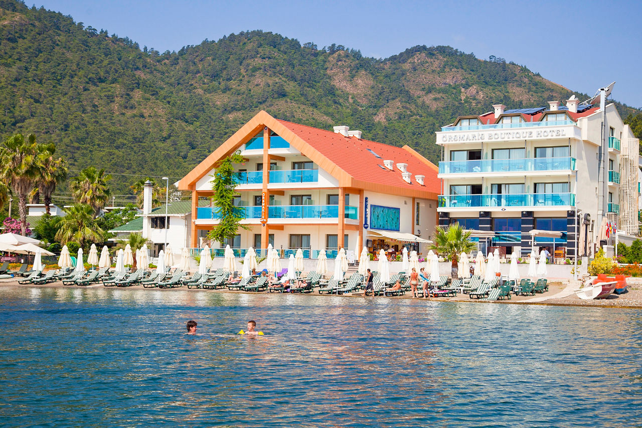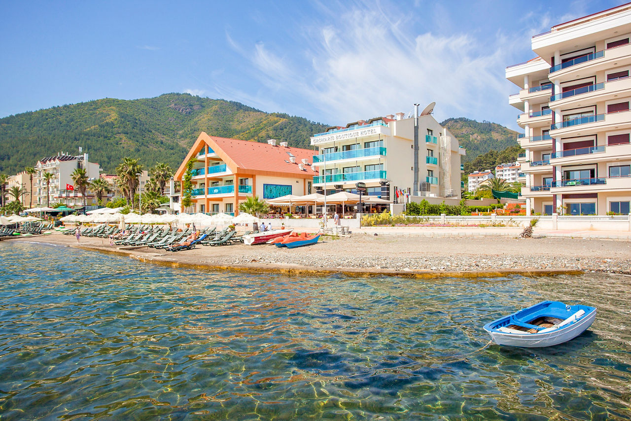 Complete with comfortable rooms, excellent service and a beachfront location, the Orsmaris Hotel makes for a great holiday in the Turkish sun. Located at the quieter end of Marmaris? seafront, you can enjoy some well-deserved rest and relaxation, whilst only being a short taxi ride away from all the action this popular resort has to offer. With two pools set within lush greenery, a restaurant serving up mouth-watering meals and spectacular views, this small and friendly affair is bound to appeal to families, couples and friends alike.