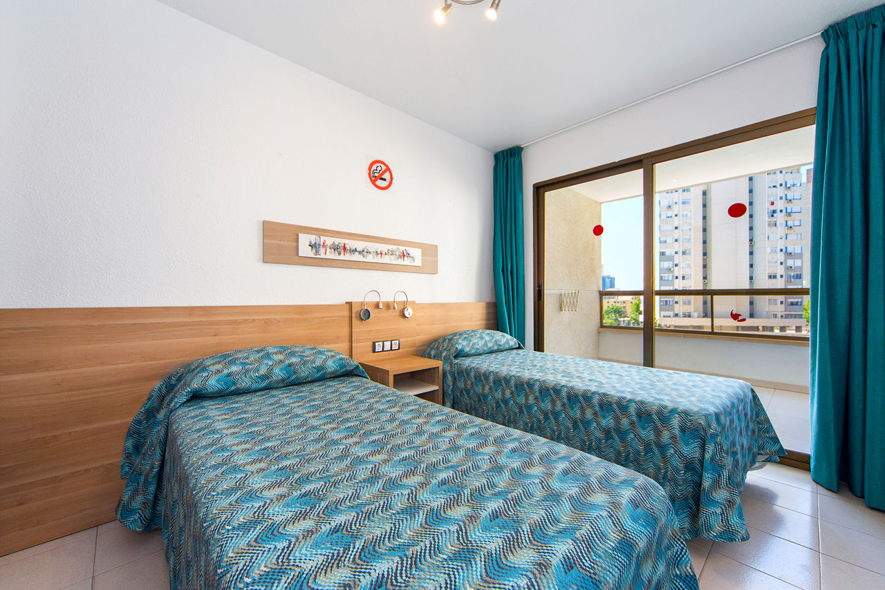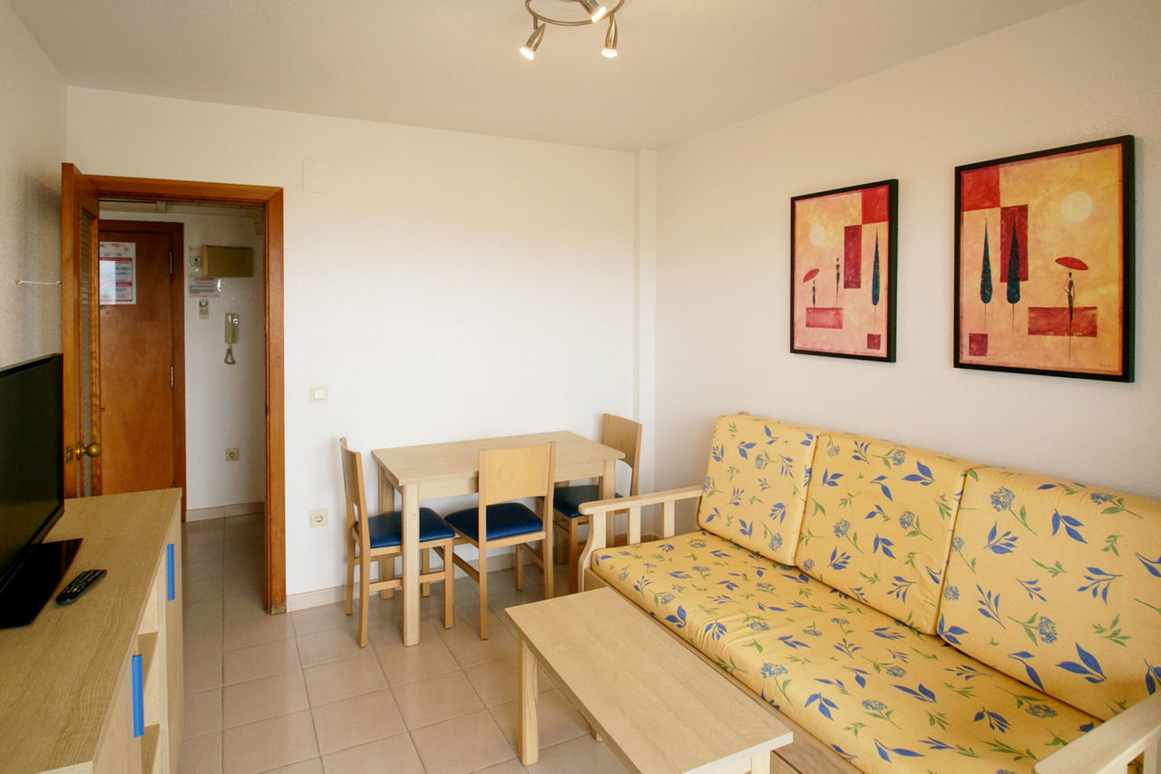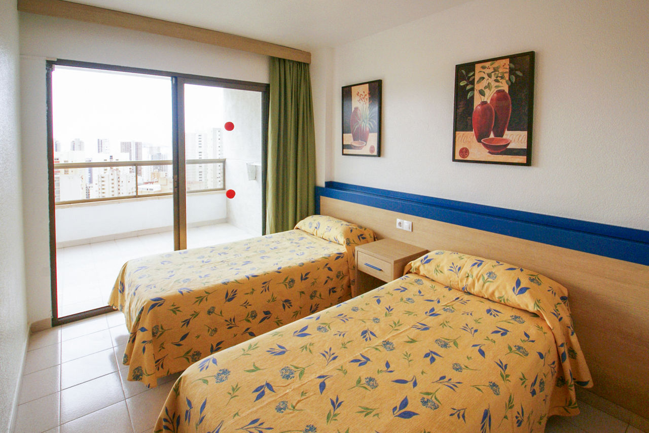 One Bedroom apartments sleep up to 4 adults and have bathroom, air conditioning*, Wi-Fi*, satellite TV, safety deposit box*, kitchen with cooking rings, fridge, kettle, toaster, and balcony.