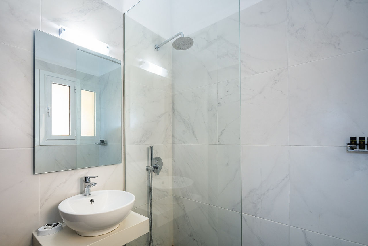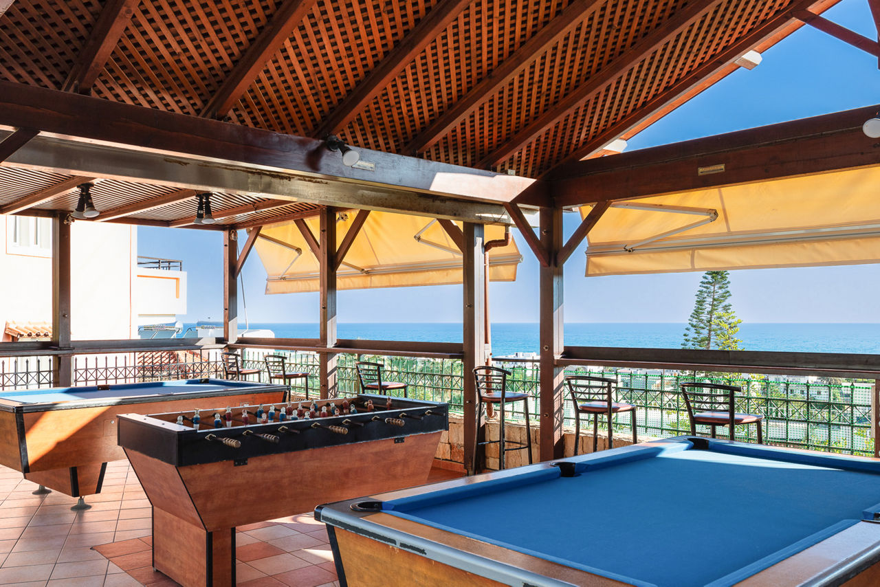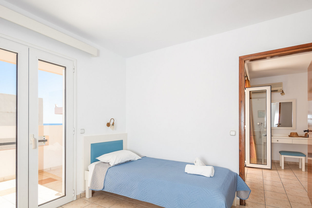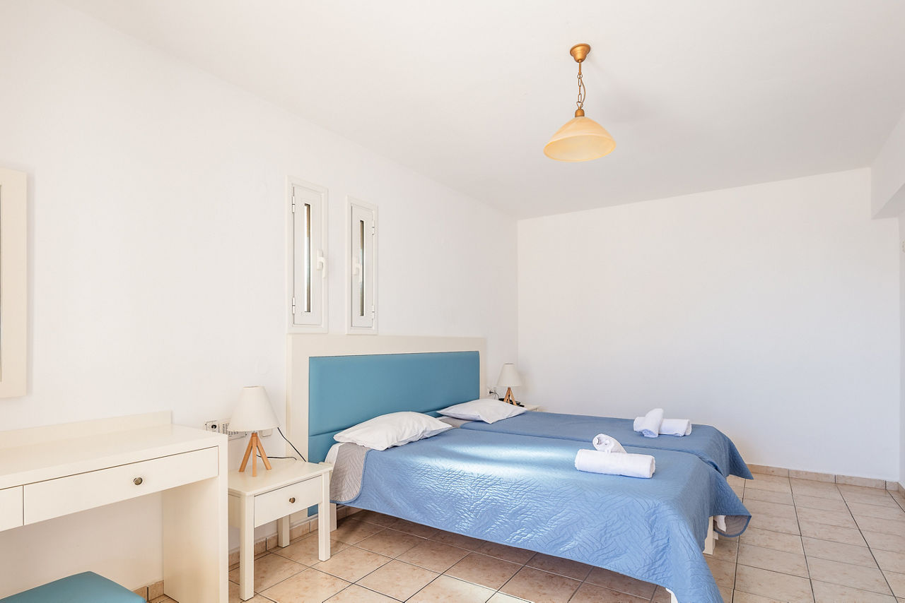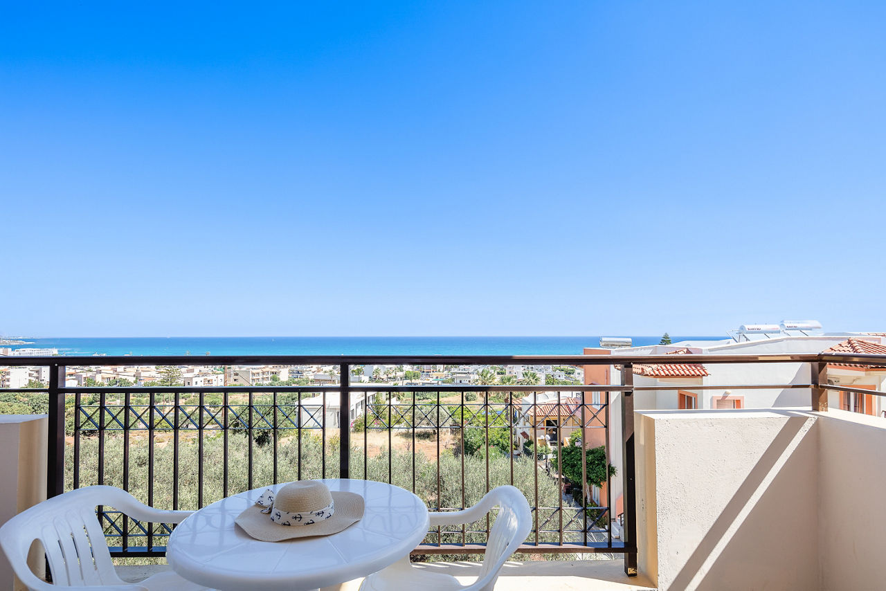 Studios sleep up to 3 people and have bathroom (most rooms have a bathtub and a few rooms have a shower) kitchenette (2 cooking rings, fridge and cooking utensils), filter Coffee Maker, satellite TV, air- conditioning*, hairdryer and balcony or terrace overlooking either the sea, the garden or the landscape. One bedroom apartments sleeping up to 4 people are also available.