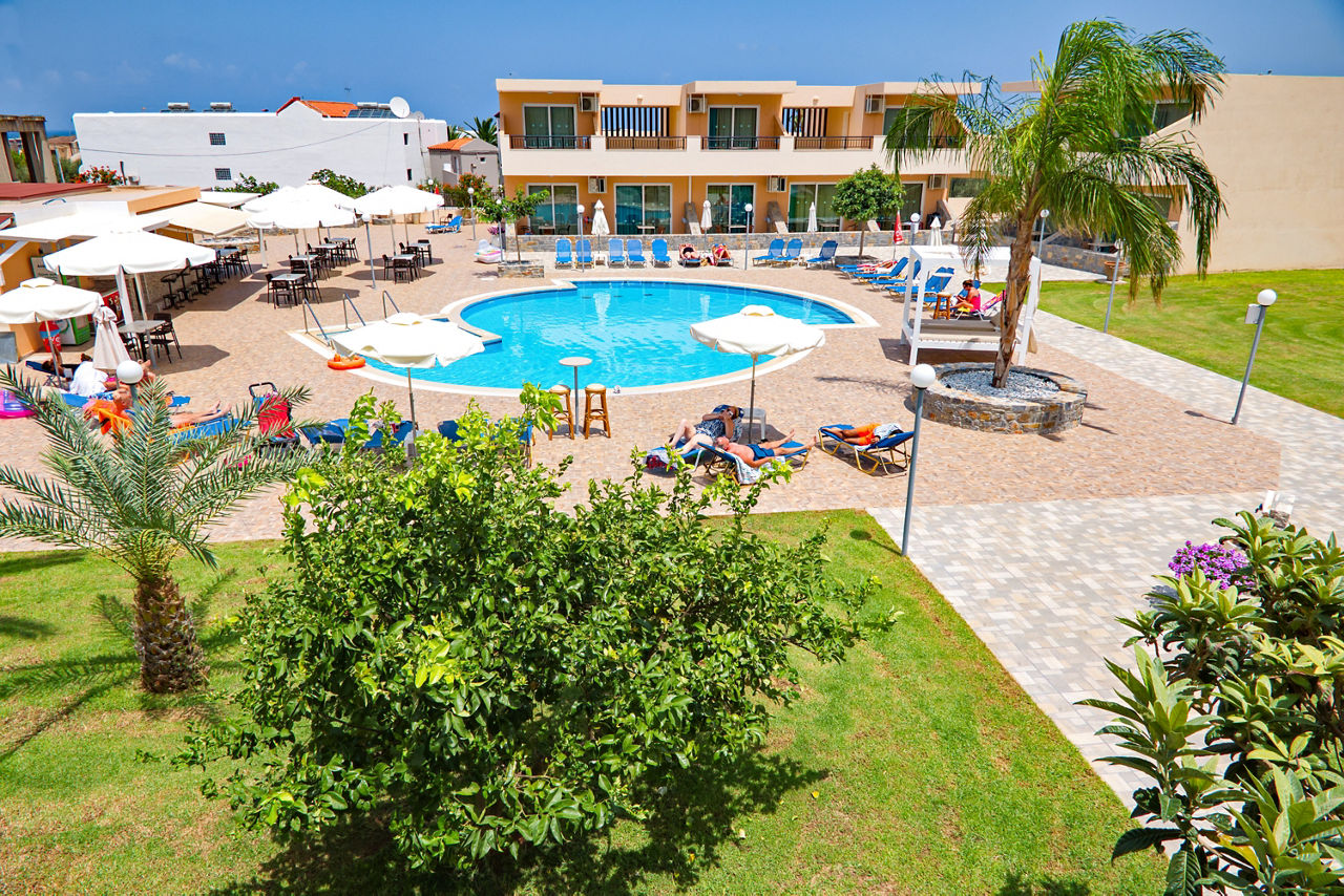 These family-run studios have a friendly and relaxed atmosphere and are set amidst lovely gardens in a quiet location of Malia, yet within easy walking distance of the bars and clubs on the main strip. The studios are bright and spacious and the pool enjoys views of the mountains and olive groves that surround the area.