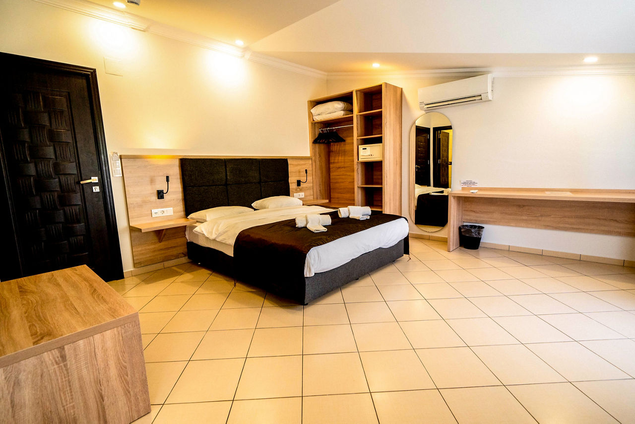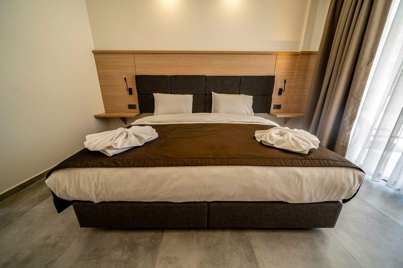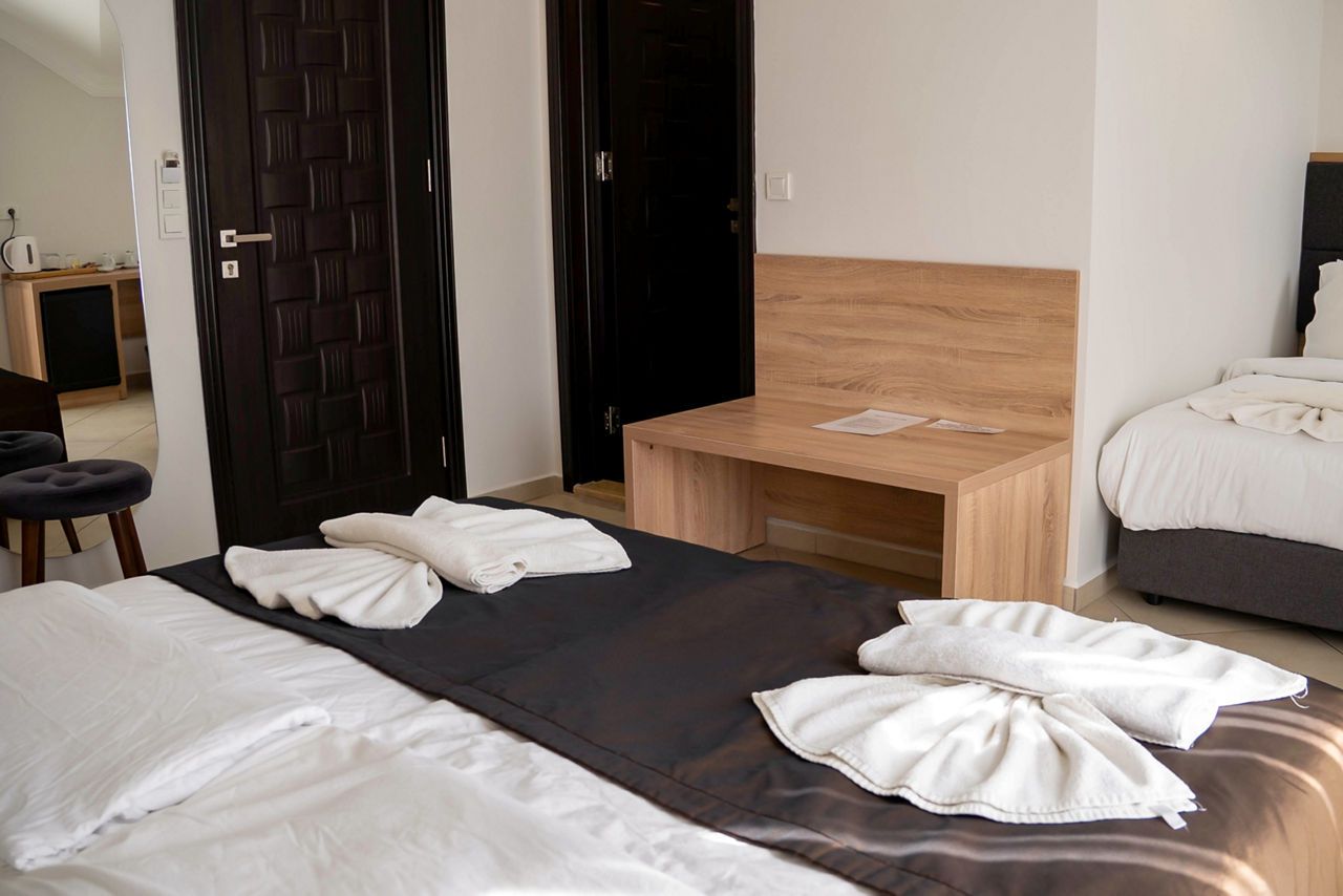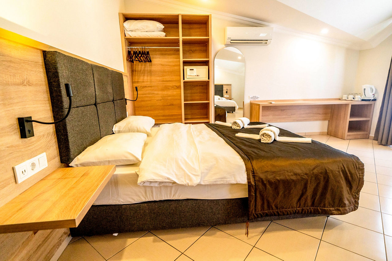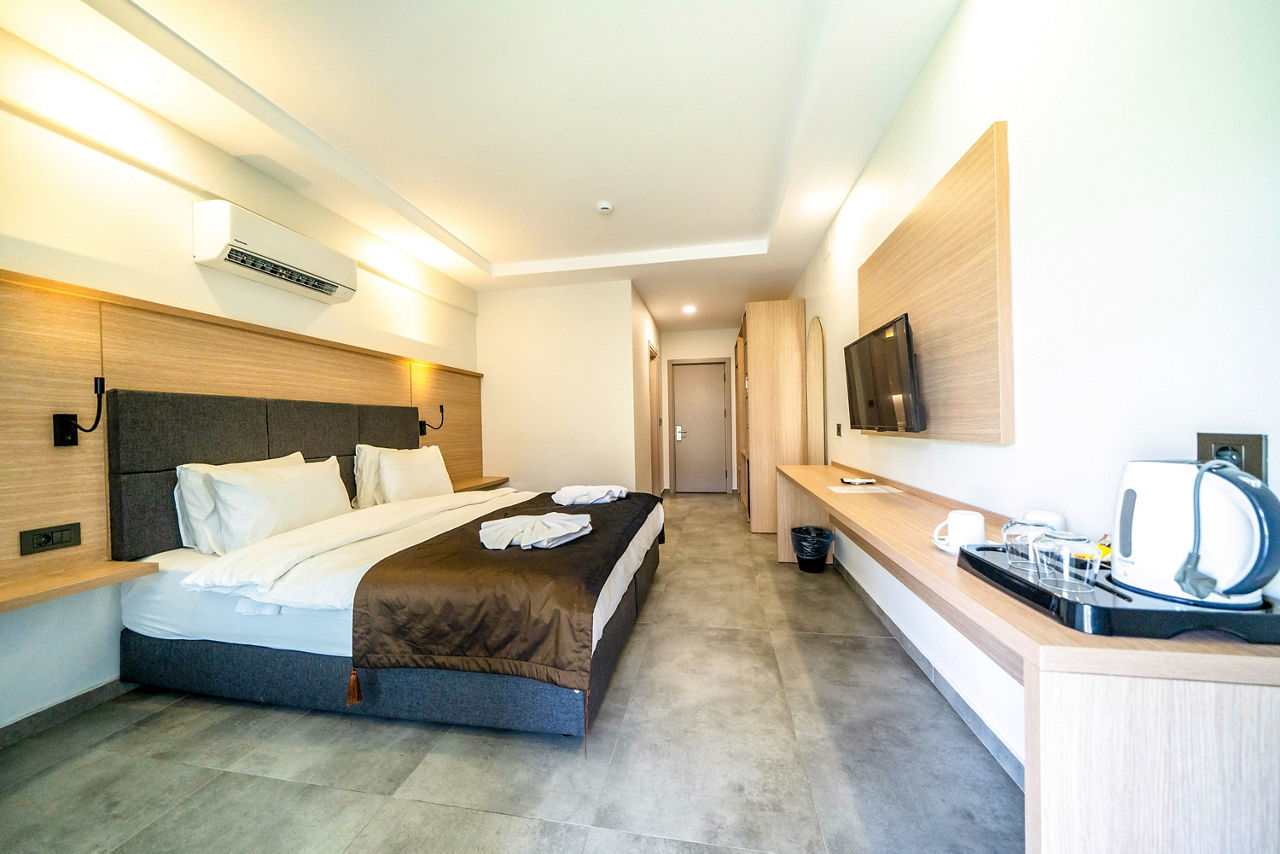 Standard Double or Twin rooms sleep 2 adults and have bathroom containing a shower, air conditioning, hairdryer, fridge, kettle, safety deposit box*, free Wi-Fi and balcony. Standard Triple rooms, Deluxe Double or Twin rooms, Family rooms sleeping up to 4 adults and Sole Use rooms are also available.