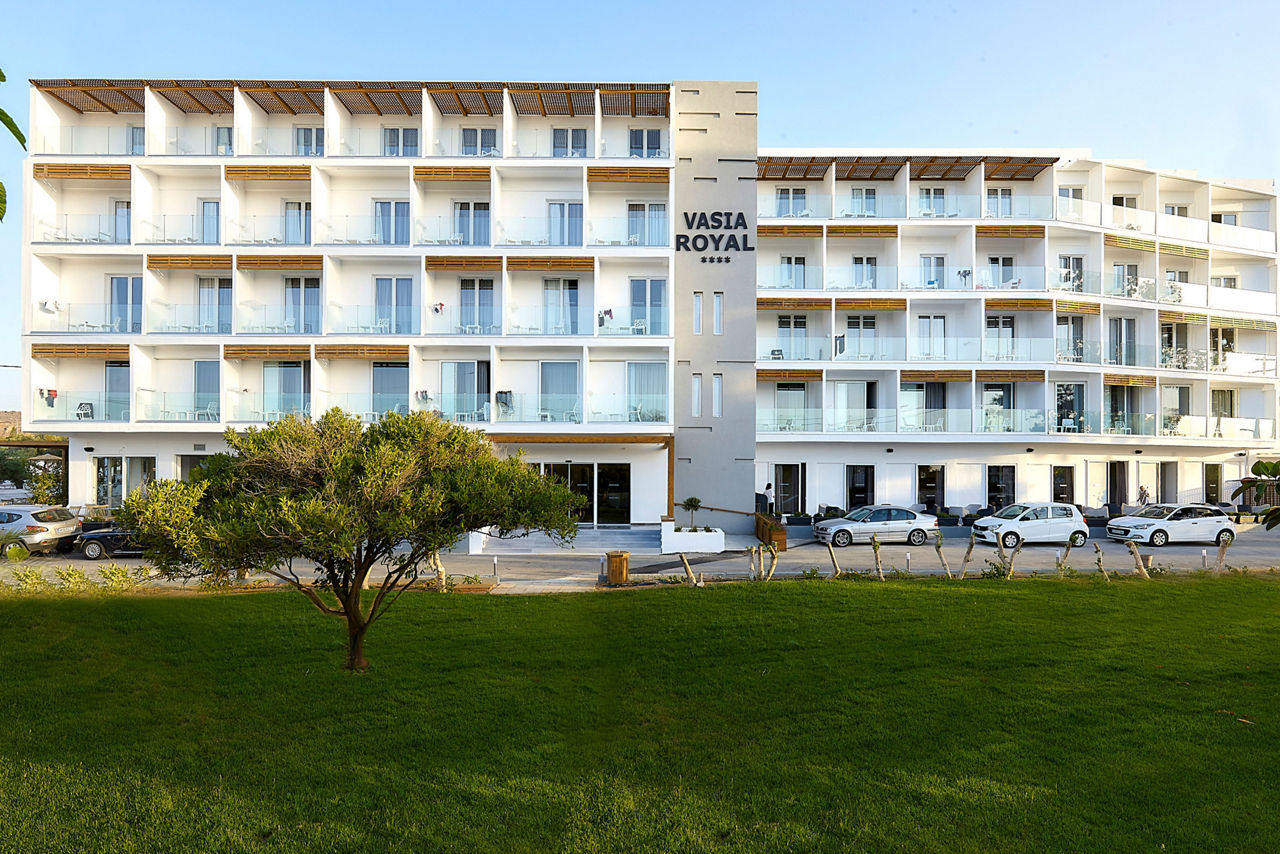 Set back with the beach within reach, and with both Gouves and Kokkini Hani only a short drive away, Vasia Royal offers a perfect escape for explorers. Relax at the pool, or opt for a hire car and take the chance to visit local tavernas and towns nearby ? drive a little further and visit the city of Heraklion. Rooms offer a comfortable escape at the end of the day, with modern touches throughout.