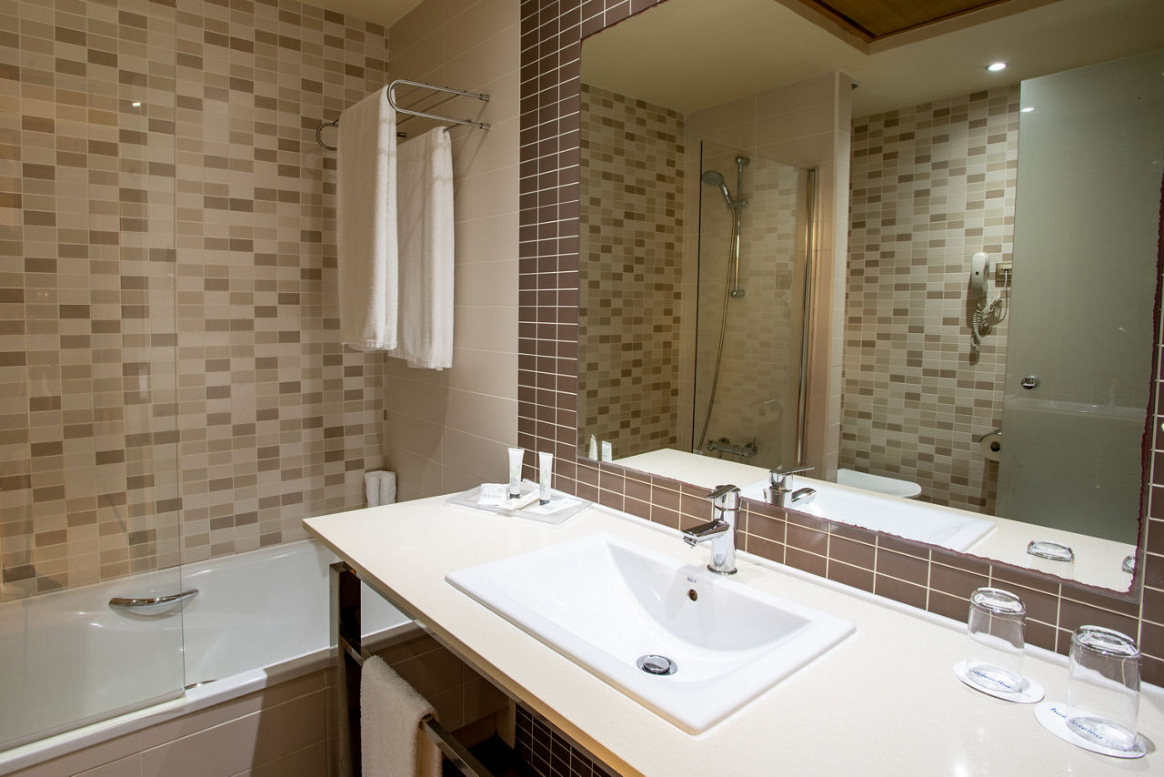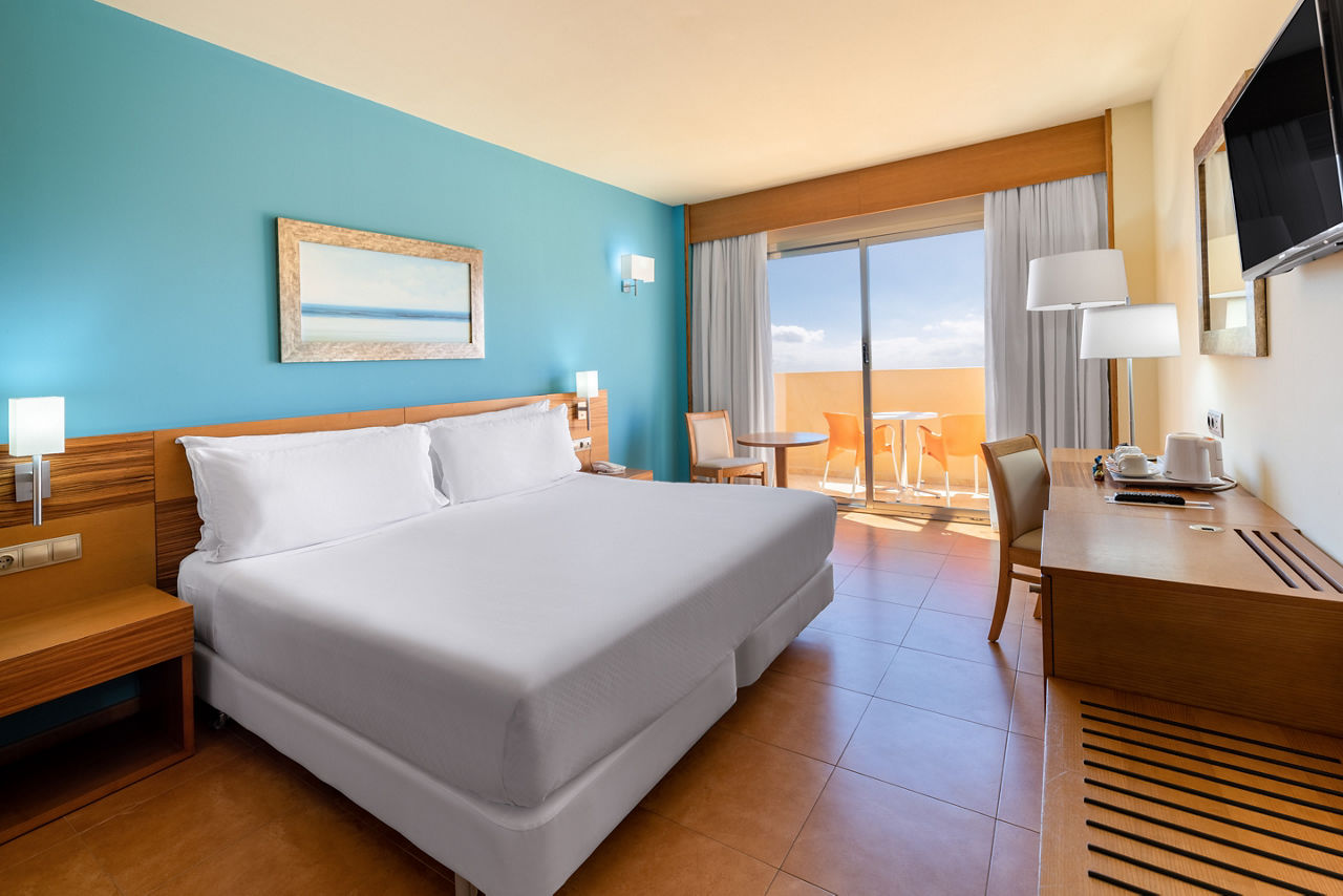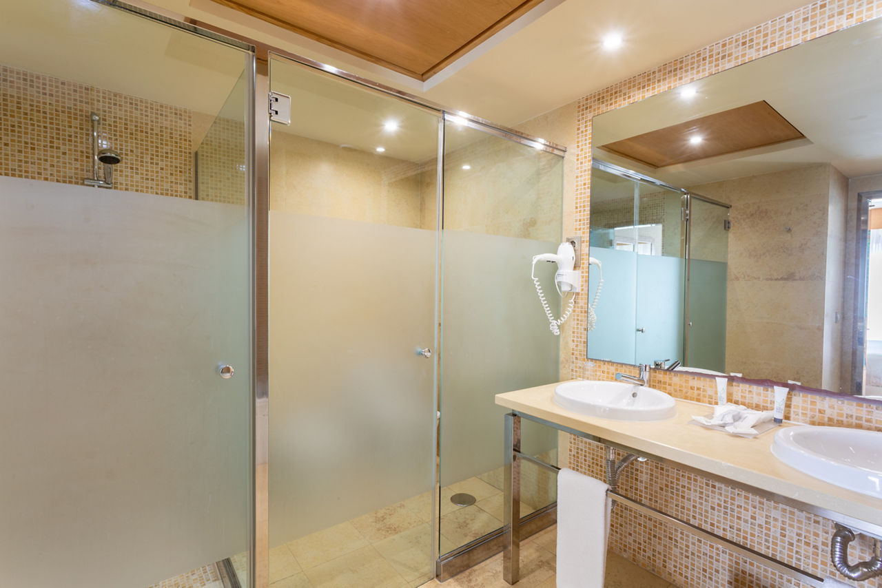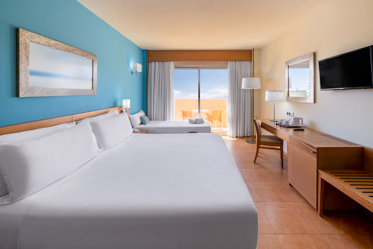 Double rooms sleep up to 3 adults and have bathroom containing a bath with shower attachment, air conditioning, hairdryer, flat screen television, tea and coffee making facilities and balcony or terrace. Family rooms, sleeping up to 4 adults and 2 children, Junior suites and Senior suites, both including a whirlpool bath, are also available.