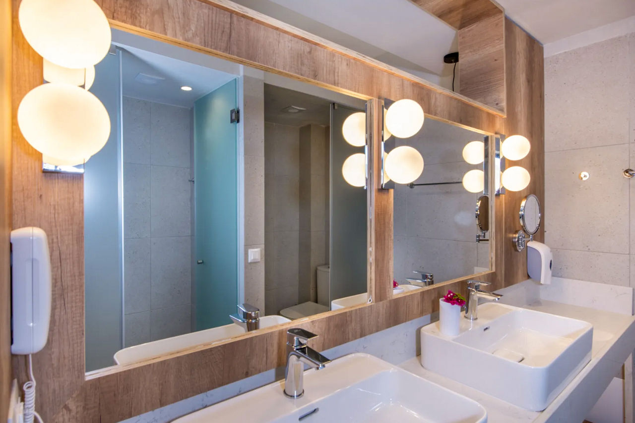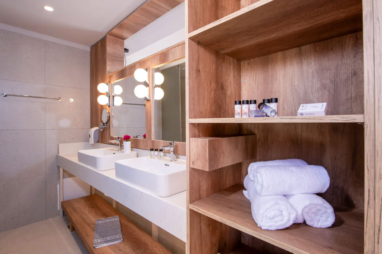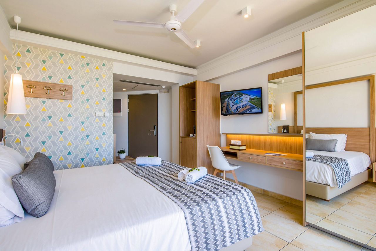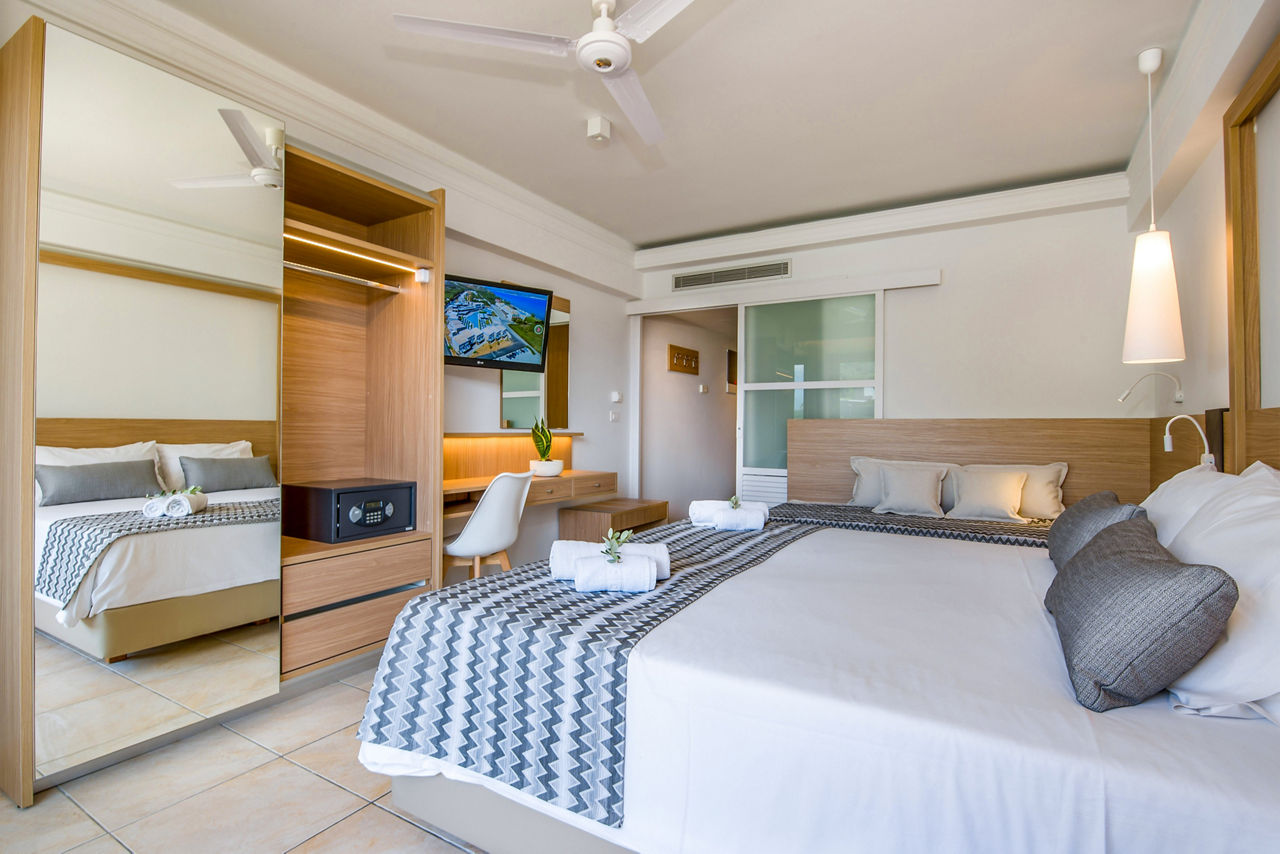Double rooms sleep up to 2 adults and have bathroom containing a bath or shower, air conditioning, hairdryer, flat screen television, fridge and balcony or terrace. Room upgrade options are also available.