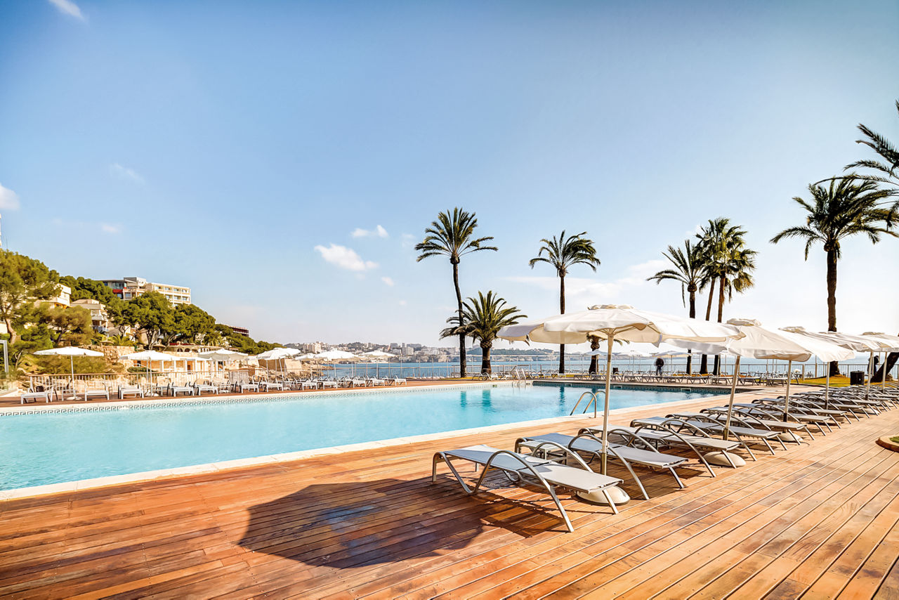 With a relaxed atmosphere, great service and lovely location overlooking the Mediterranean this hotel offers the perfect holiday for couples, friends and families alike. It is all about the stunning sea views here, which can be enjoyed from the modern pool area and lobby bar and the hotel?s private, pebbled cove. Just head down a few steps from the pool area to the private bathing platform. For beach lovers, the sandy, Illetas beach is within walking distance. Back at the hotel there is a choice of two restaurants, plus you can dine alfresco at the poolside snack bar. There is a great range of activities and facilities to keep all ages entertained, including a children?s club for the kids. Adults looking to relax can head to the fantastic spa and if you are feeling active there is an 18-hole golf course next door. The stylish rooms offer cool and contemporary surroundings and all come with a sea view. Hotel Palace Bonanza Playa is a great choice for a relaxing getaway in Majorca.