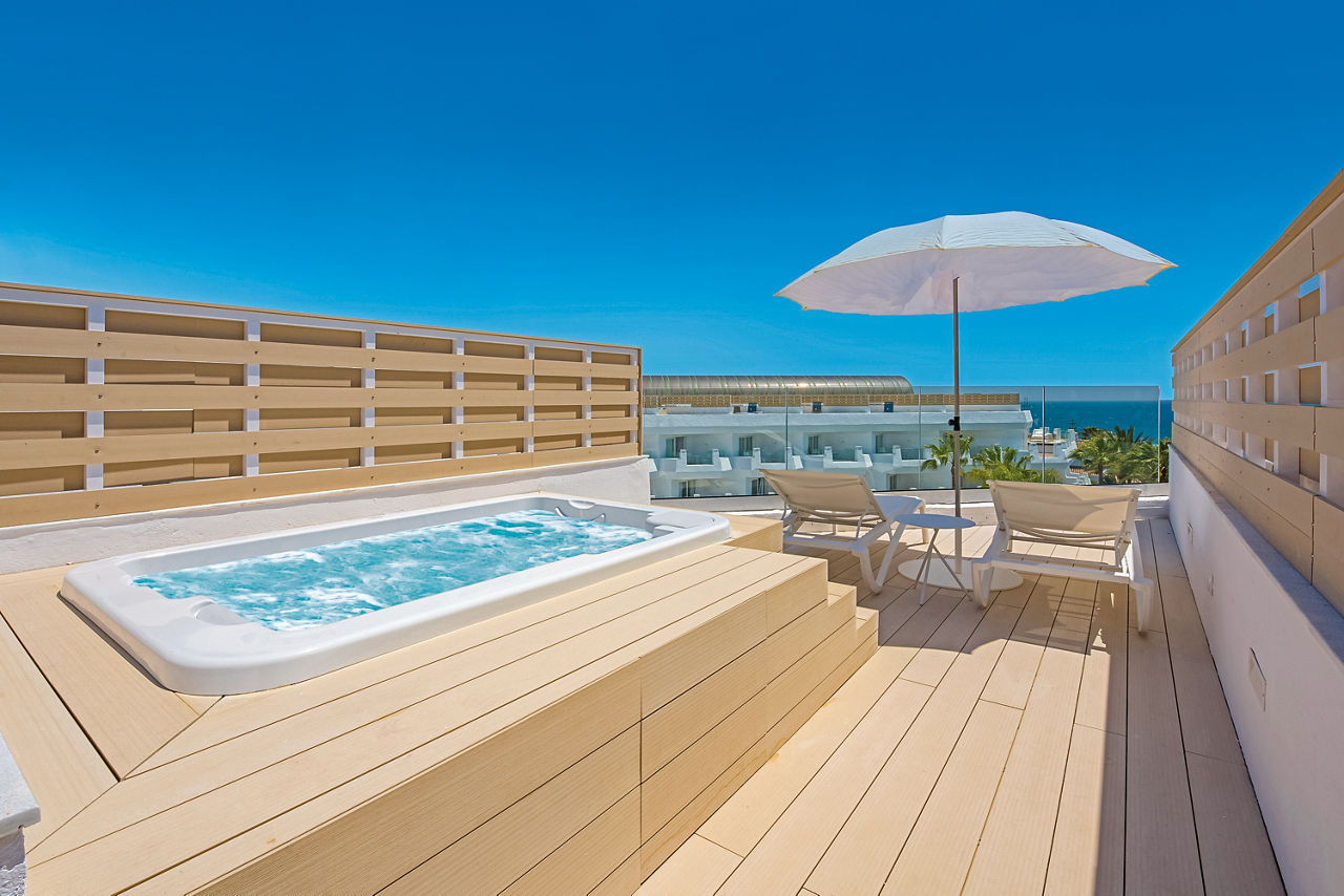 Double rooms sleep up to 2 adults and 1 child and have air-conditioning, satellite TV, full bathroom and balcony or terrace. Double rooms with pool view or side sea views and Single rooms are also available . Family rooms sleeping up to 2 adults and 2 children or 3 adults and 1 child and Junior suites sleeping up to 2 adults and 1 child are also available.