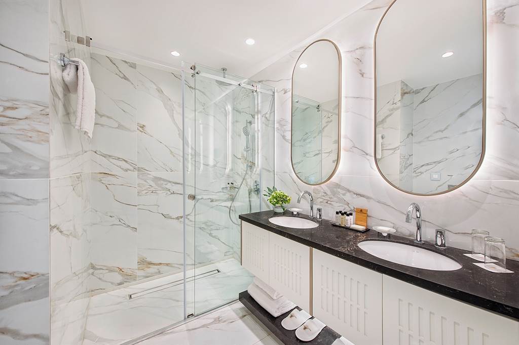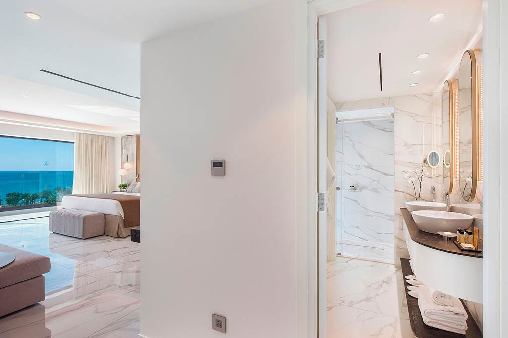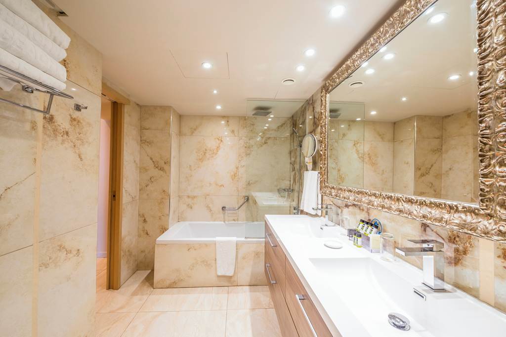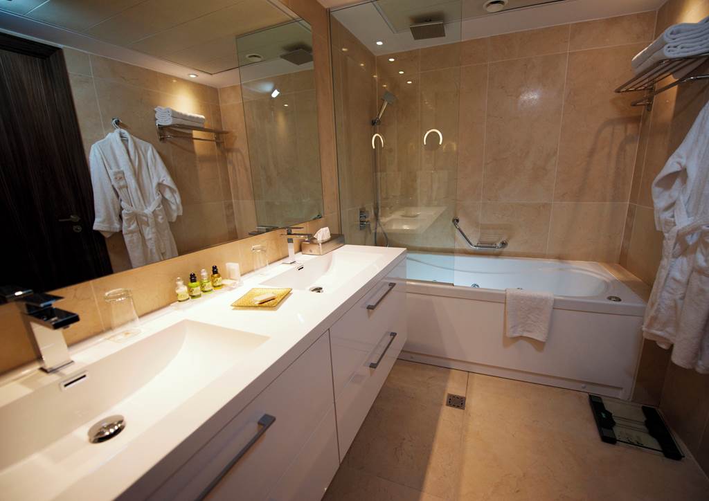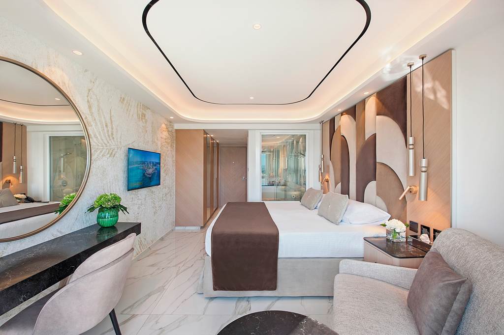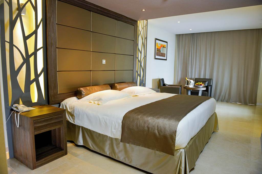 Classic rooms sleep up to 2 adults and 1 child and have bathroom containing a bath with shower attachment, air conditioning, hairdryer, flat screen television and a balcony or terrace. Classic rooms with Sea View, Superior rooms sleeping up to 3 adults or 2 adults and 2 children have the same facilities as the Classic rooms, but are larger in size and also include a small dining table and chairs with either an Inland View or a Side Sea View, Junior suites sleeping up to 3 adults and 2 children have the same facilities as Superior rooms, plus free Wi-Fi, free safety deposit box, tea and coffee making facilities, and are also larger in size and have an en-suite bathroom with a bath and shower, plus a separate walk-in shower, Queen suites have the same facilities as Junior suites but are larger in size and are located in the gardens of the hotel and Classic rooms for Sole Use are also available.