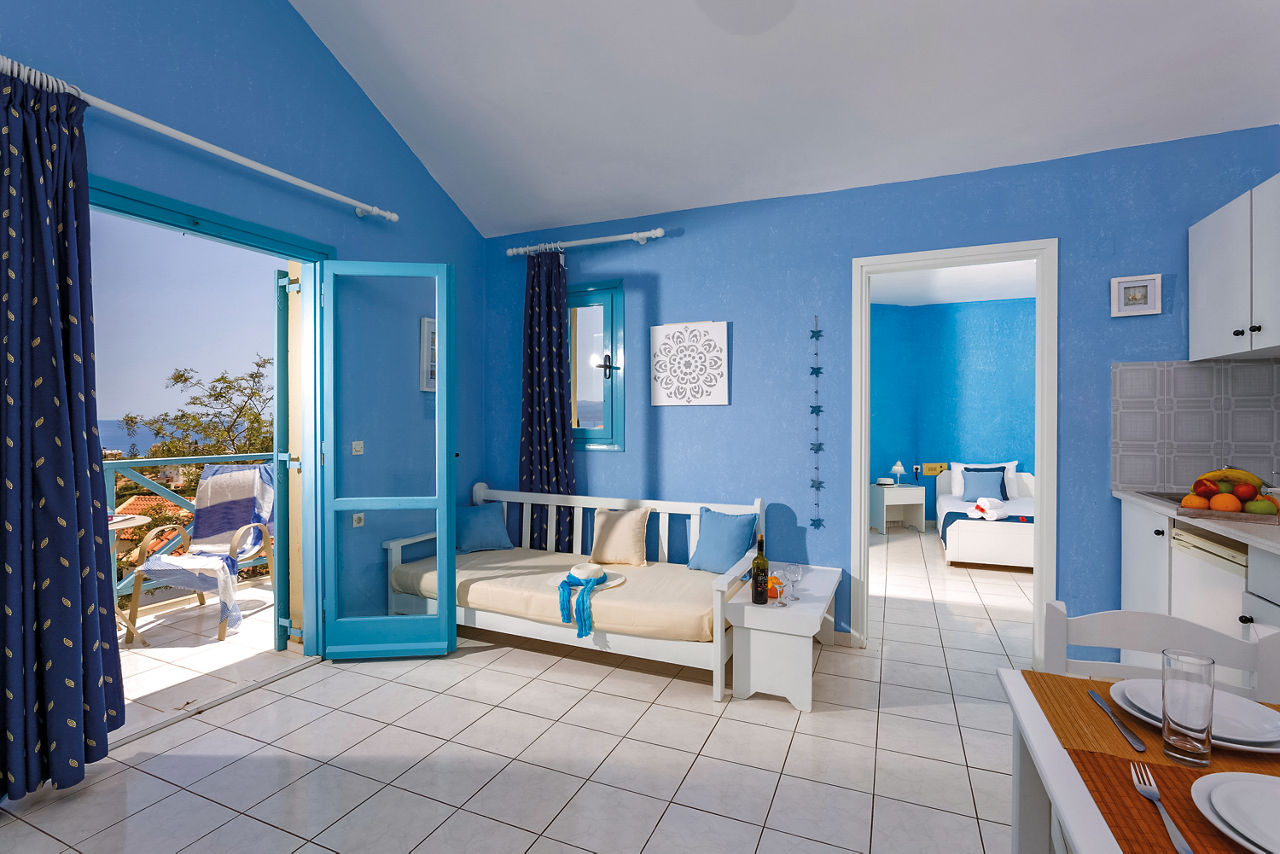 Studios sleep up to 2 adults and have bathroom containing a shower, air conditioning, hairdryer, fridge, double cooking rings, tea and coffee making facilities and balcony. Room upgrade options are also available.