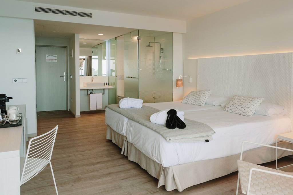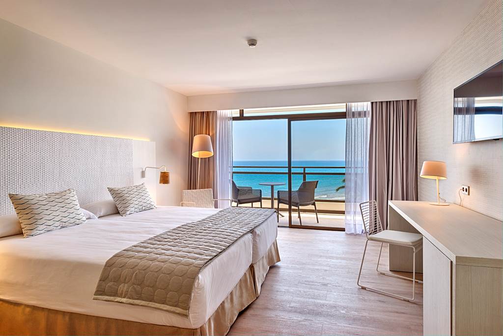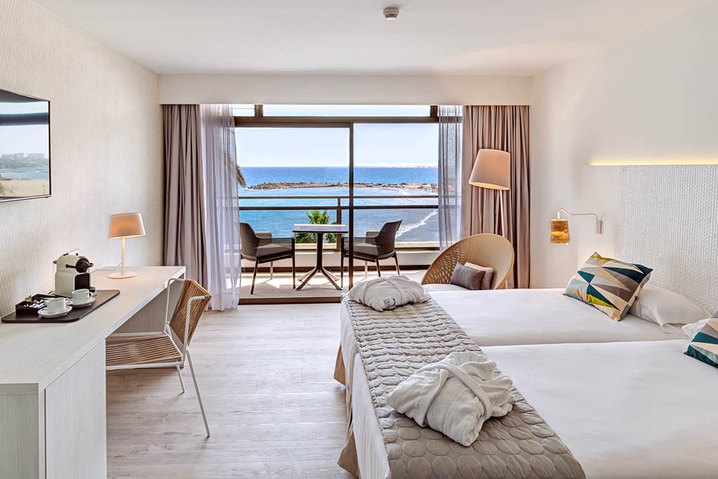 Double sea view rooms sleep up to 3 adults and have twin beds, full bathroom with hairdryer, satellite TV, air-conditioning, mini-bar* (on request) and balcony or terrace. Double sea view and Double comfort rooms for sole use are also available.