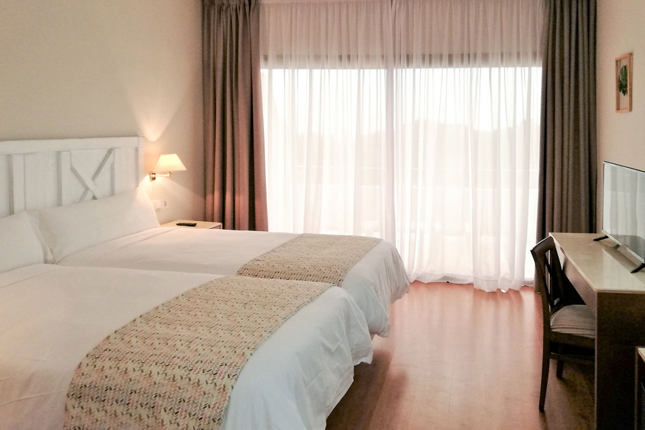 Double or Twin rooms with Mountain or Golf View sleep up to 3 adults and have bathroom containing a bath or shower, air conditioning, television, mini-bar*, safety deposit box* and balcony or terrace. Room upgrade options and Sole Use rooms are also available.
