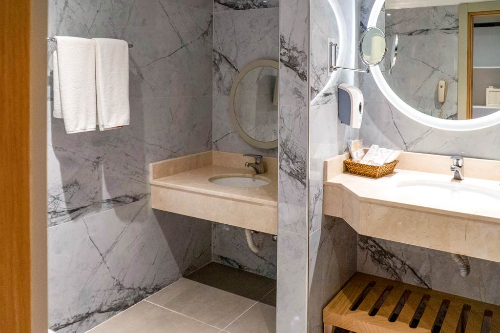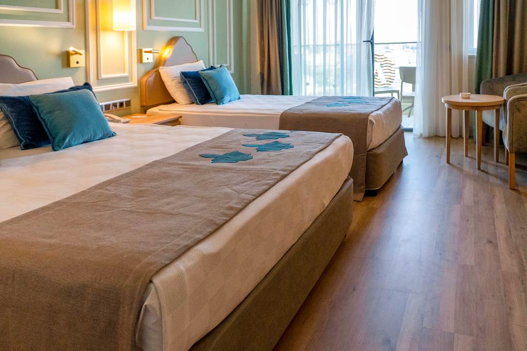Standard Double or Twin room land view rooms sleep up to 3 adults and have bathroom containing a bath or shower, air conditioning, hairdryer, bathrobe and slippers, safety deposit box, flat screen television, kettle, mini bar* and balcony. Room upgrade options and Sole Use rooms are also available.