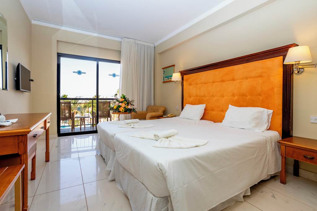 Studios sleep up to 3 adults and have bathroom containing a bath with shower attachment, air conditioning*, hairdryer, television, tea and coffee making facilities, fridge, toaster, microwave, double cooking rings and balcony or terrace. One Bedroom apartments sleeping up to 4 are also available.