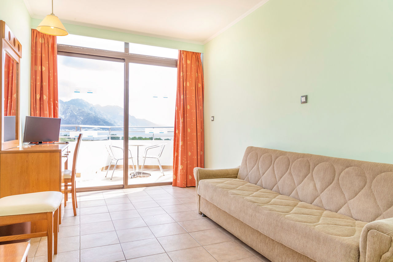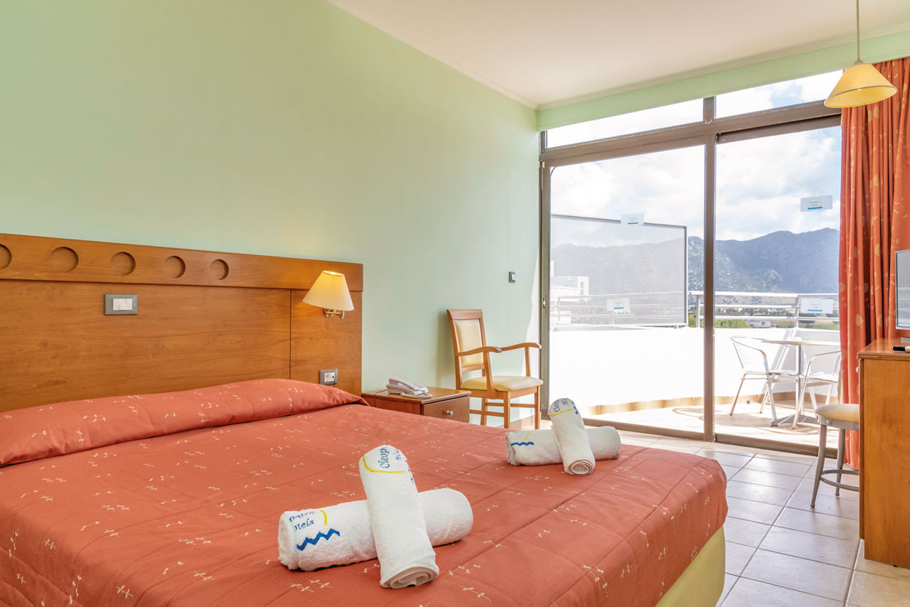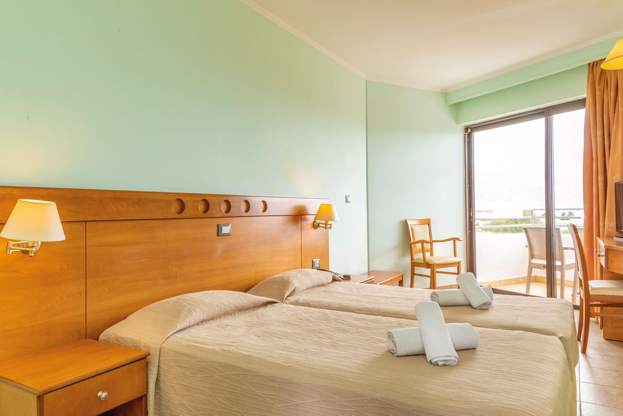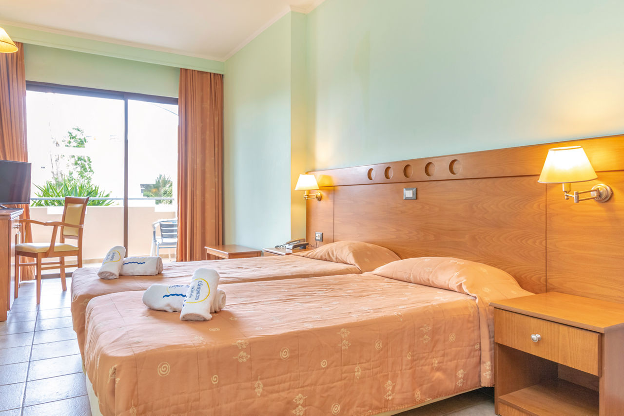 Twin rooms sleeping up to 2 adults and have a bathroom with shower, hairdryer, air conditioning*, television, fridge and balcony or terrace. Twin rooms sleeping up to 3 adults are also available.