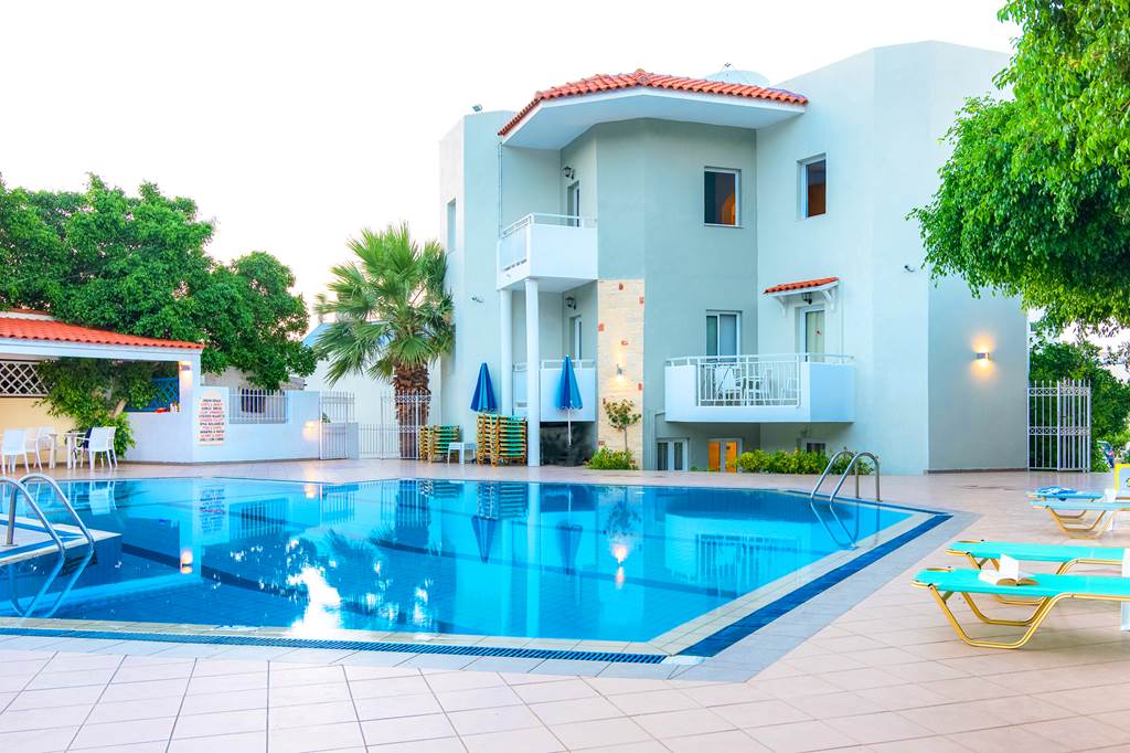 The delightful family-run Melissa studios and apartments are located in a quiet area of Malia, within easy walking distance of the old town and Malia Beach road with it's many bars and restaurants. The rooms are spacious and comfortable with all facilities you need for a self catering break while the large pool area is a great place to relax and enjoy the sun. Sip a refreshing drink along with a tasty snack from the poolside bar, nothing could be better.