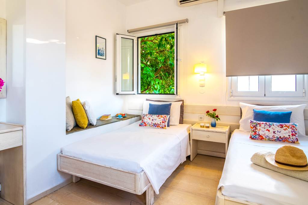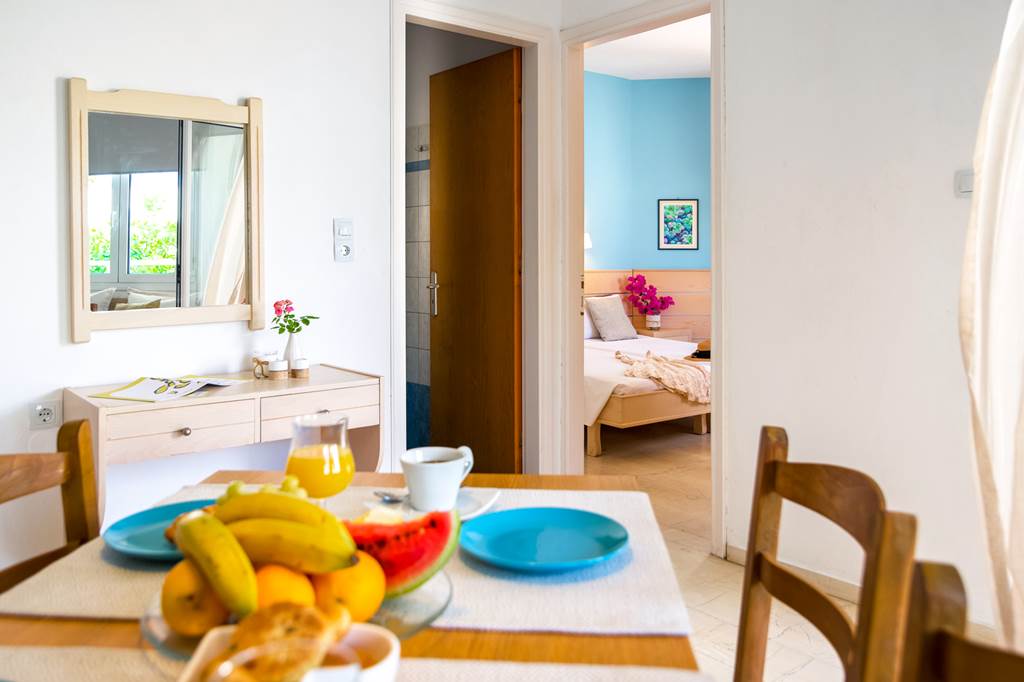 Studios sleep up to 2 adults and have bathroom containing a shower, air conditioning*, hairdryer, kitchenette with double cooking rings, tea and coffee making facilities, fridge and a balcony or terrace. One bedroom apartments sleeping up to 4 with separate bedroom and sofa beds in the lounge area and a balcony or terrace are also available.