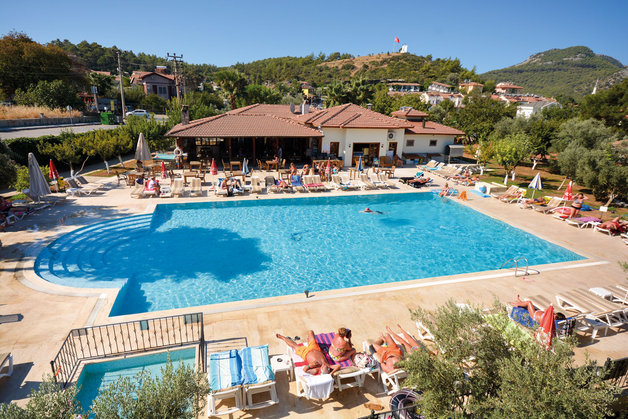 The Saray Hotel is in a great location surrounded by stunning mountain views and close to the resort centre of Hisaronu. The hotel features a spacious pool area where you can lie back and soak up the sun, whilst children will be entertained with the children?s play area. Perfect for those looking for a great value accommodation close to the resort centre.