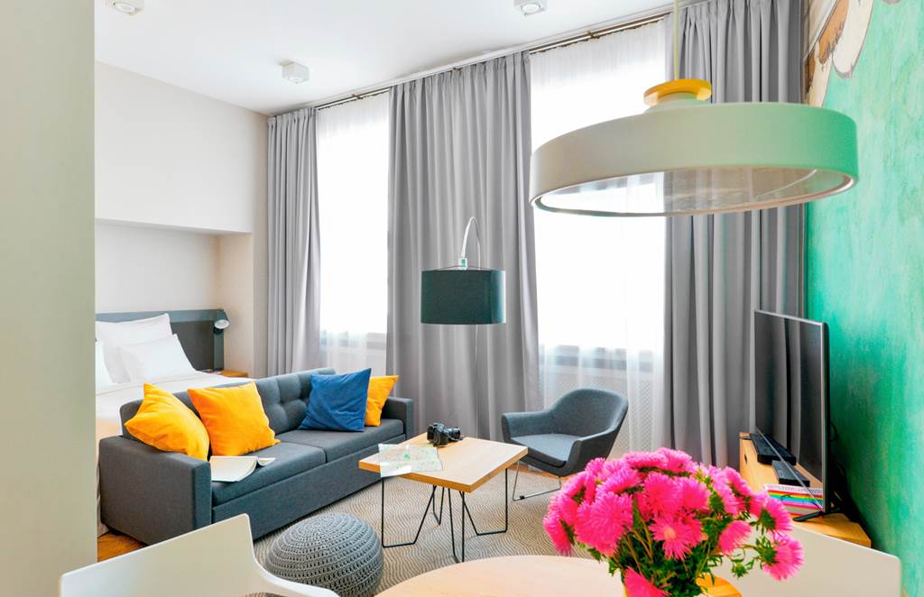 Studios and apartments sleep up to 4 adults and have bathroom containing a bath or shower, air conditioning, hairdryer, flat screen television, iron and ironing board, tea and coffee making facilities and safety deposit box.