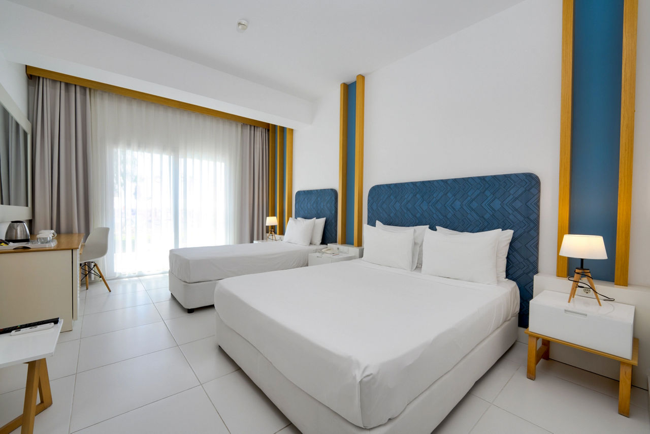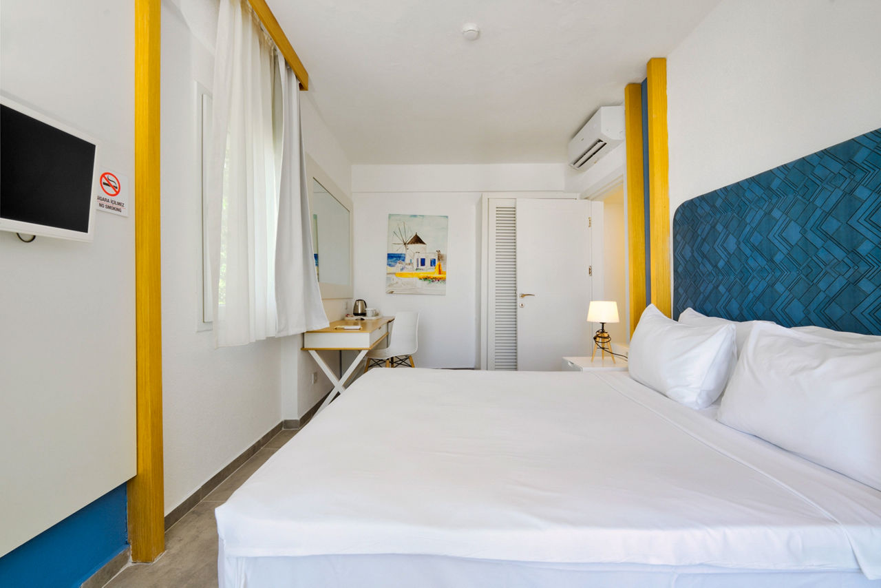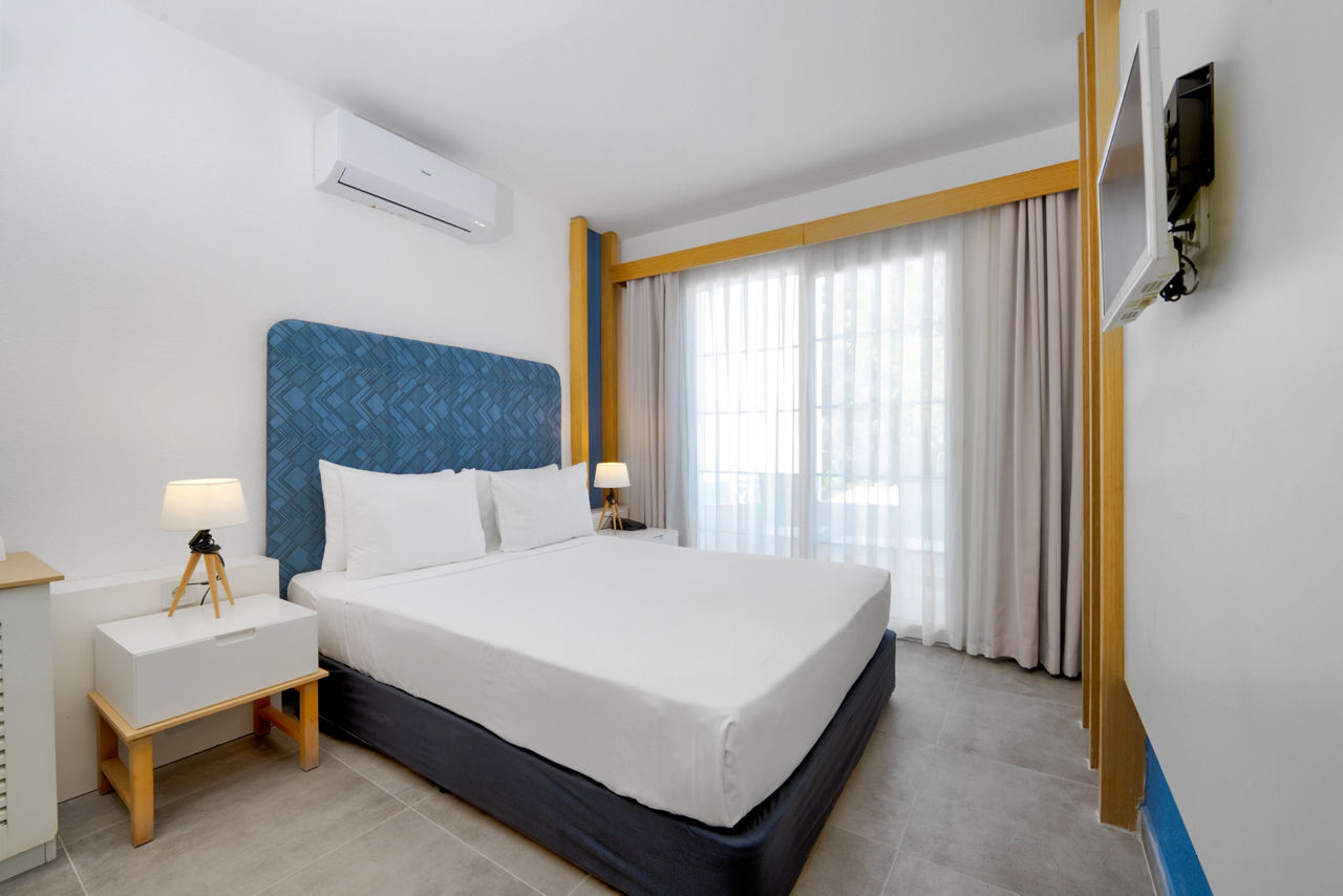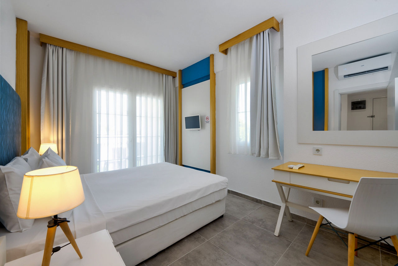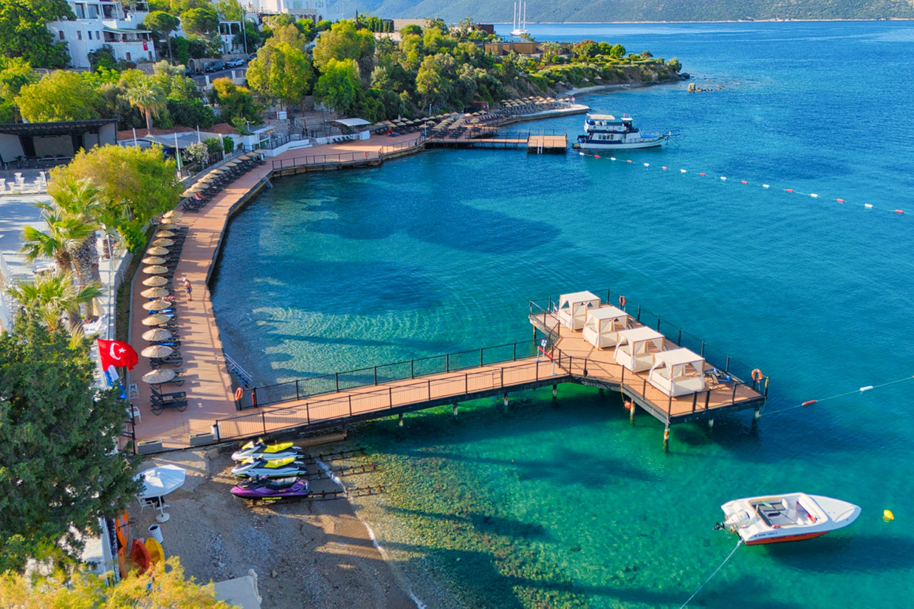 The Labranda TMT Bodrum Resort is a modern hotel located close to the heart of lively Bodrum. There's plenty of on-site facilities to enjoy, with it's own beach and pier as well as clean, bright rooms, making this hotel perfect for families and groups. By day, there's a choice of activities including sports and games, plus a mini-club. Wander along the waterfront for an evening in nearby Bodrum or stay in and enjoy the entertainment programme and mini-disco!