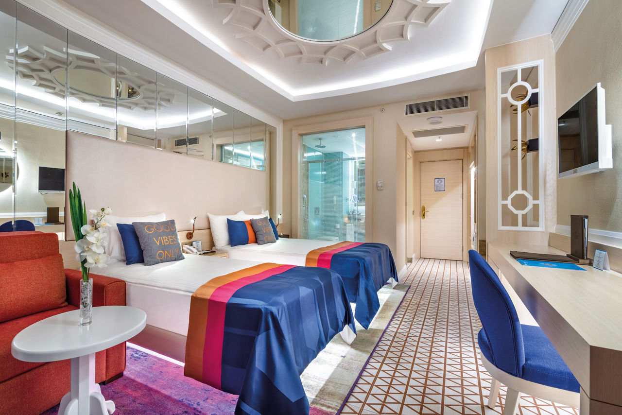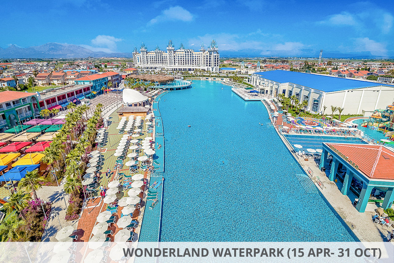 The Granada Luxury Belek is a breath taking hotel with an incredible range of facilities that will truly whisk you away to another world. Let's start with Wonderland?a huge pool, an incredible waterpark with adrenaline-pumping slides and a lazy river, and three artificial beaches: Miami Beach, with its own wave pool; Palm Beach, which the kids will love; and Maldive Beach, an adults-only paradise. There?s also a colourful fairground, two children's and teens' clubs, and a free shuttle service to the nearby beach, which is equipped with a hotel beach bar. Adults can bask in the slower pace of adults-only pools and the indulgent spa. Then there's an amazing All Inclusive package with countless bars, snack outlets, and restaurants?so all you need to do is sit back, relax, and indulge. This hotel really is the perfect choice for families and couples seeking a holiday with all the trimmings.