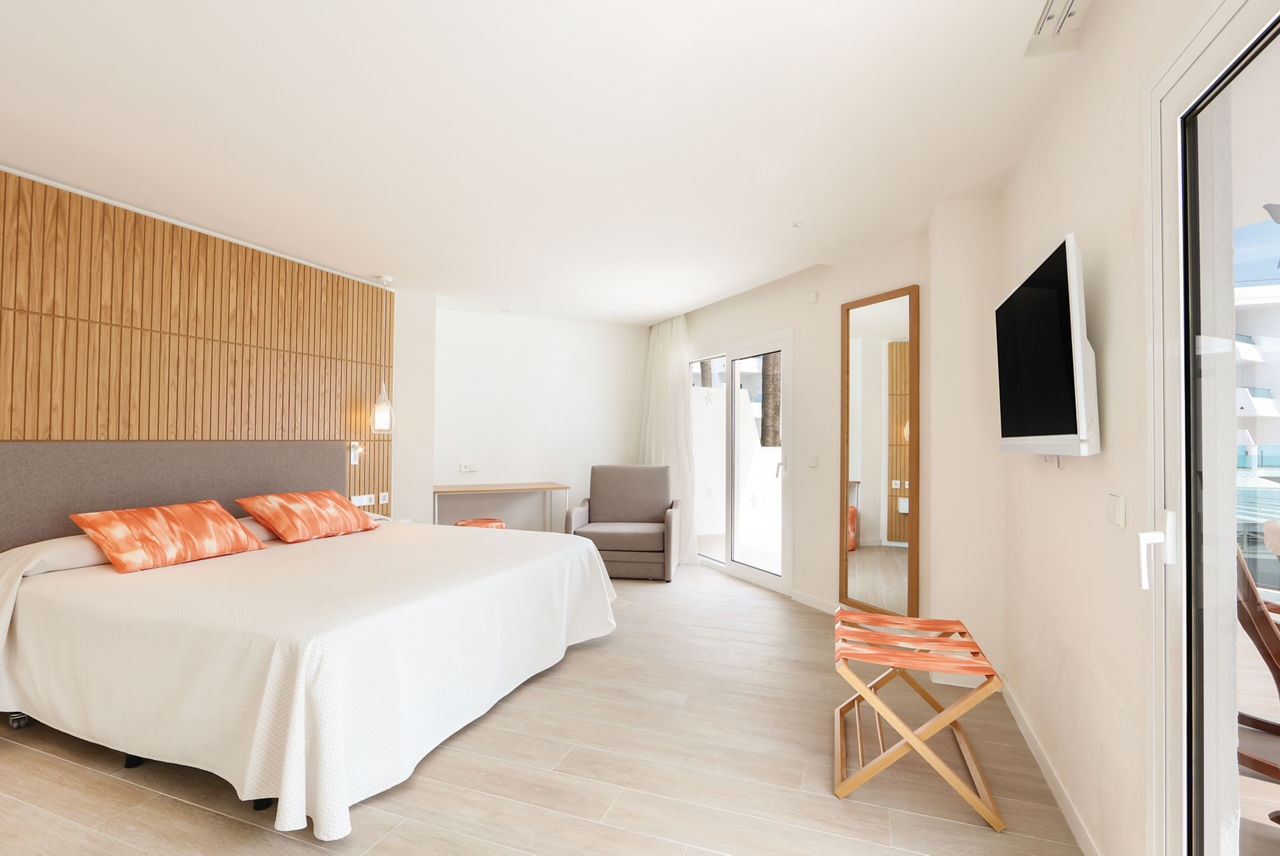 Double and Twin Basic rooms sleep up to 2 adults and 1 child and have flat screen satellite TV, air-conditioning, balcony or terrace, bathroom with shower and hairdryer. Family room, Side Sea view rooms, Double and Twin rooms and Pool view rooms are also available.