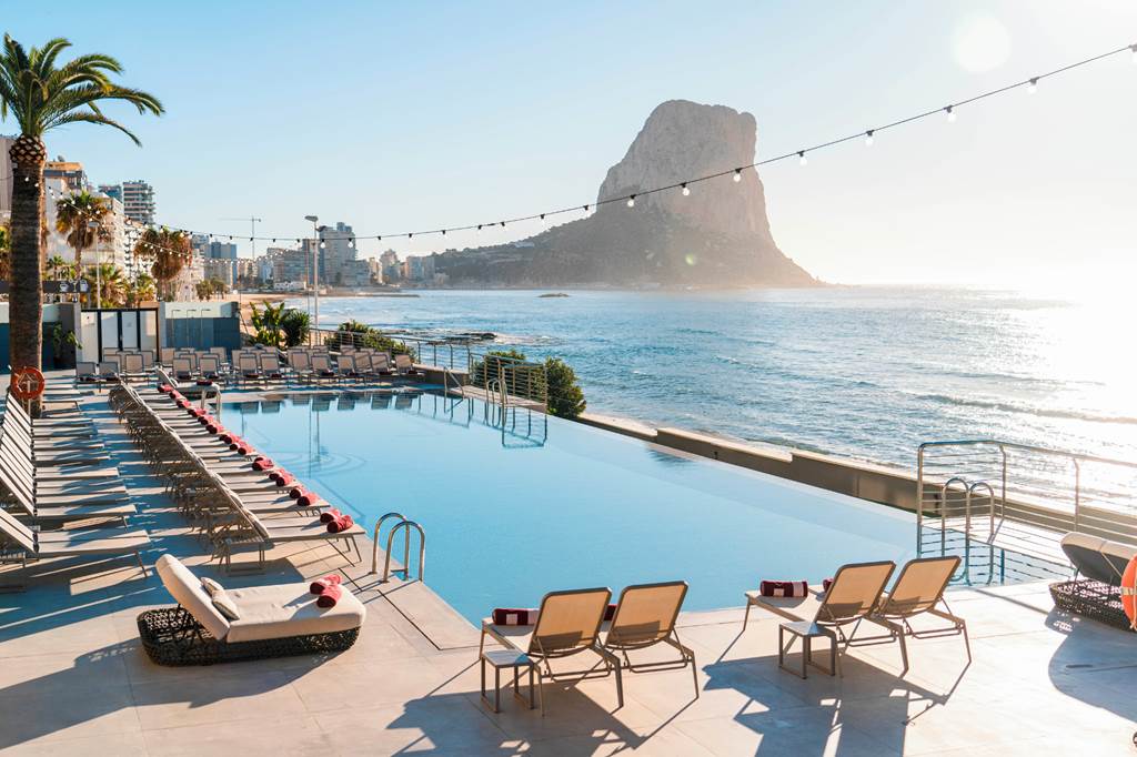 Located on the beachfront and overlooking the Penyon de Ifach rock, the SOLYMAR Gran Hotel is located in one of the most privileged areas of Calpe. With a modern design throughout, this stunning hotel has great luxury facilities including an infinity pool overlooking the sea and its very own adults only beach club. Indulge your taste buds at the freshly styled buffet restaurant or take in the stunning views on an evening with a cocktail at Doreé Gin & Sea bar.